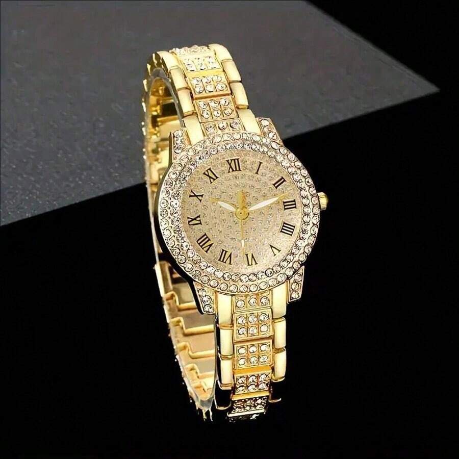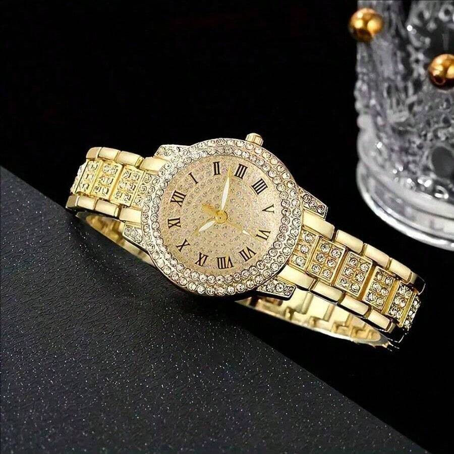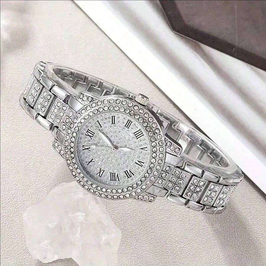 SHEIN ساعة نسائية كاجوال بعقارب رومانية مرصعة بالراين ستون