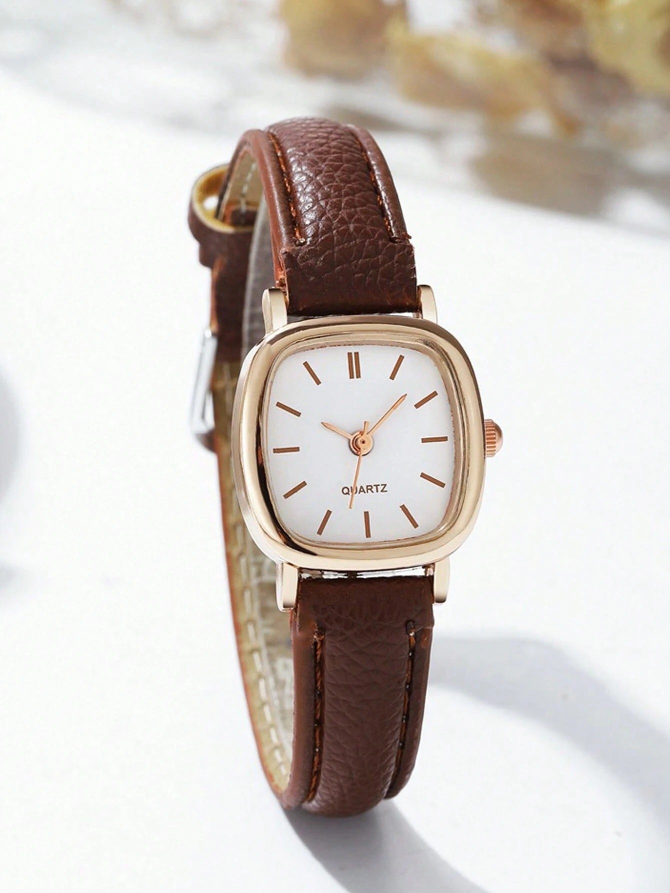 SHEIN ساعة نسائية كوارتز مربعة بسوار جلد كاجوال