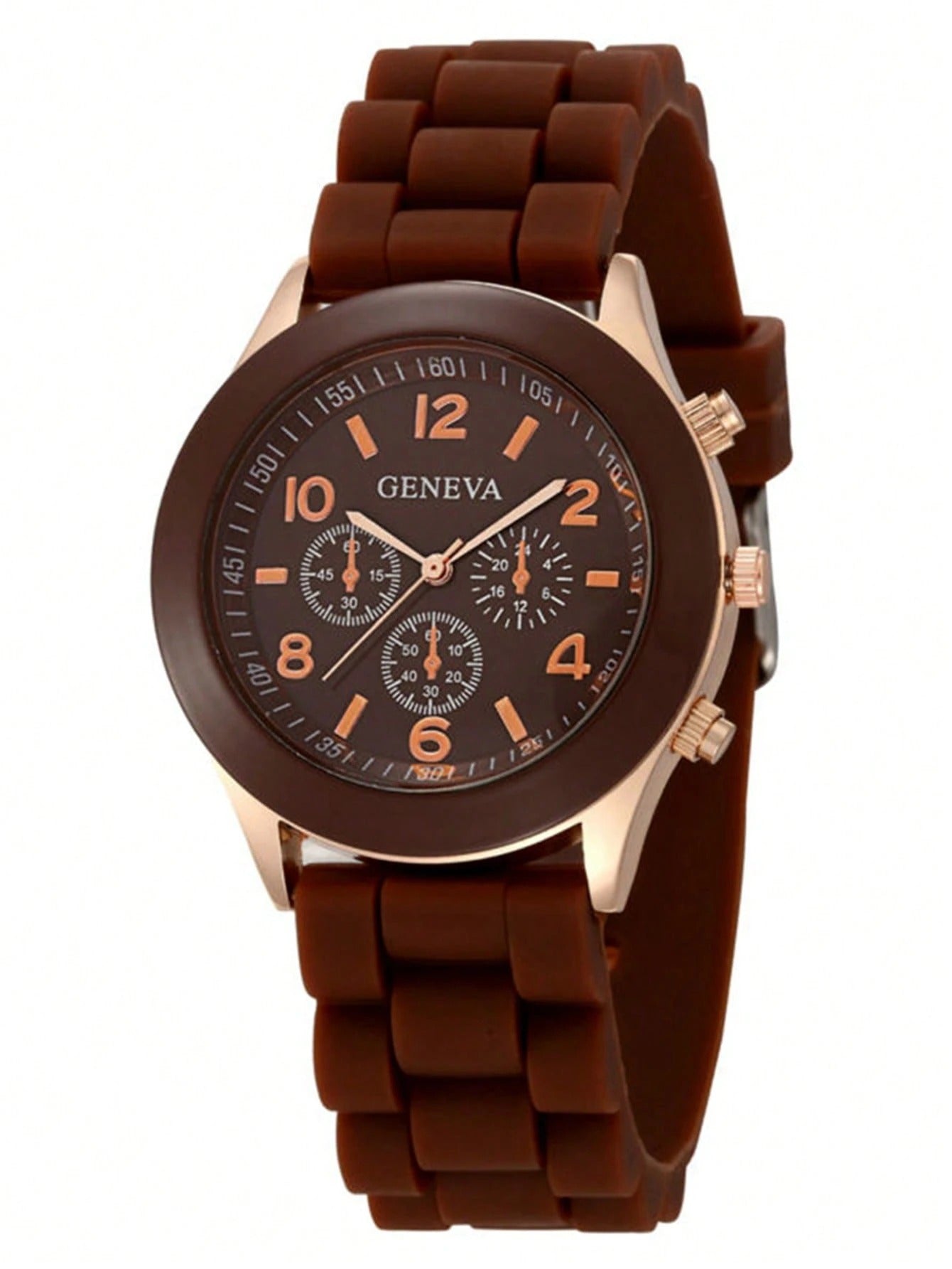 SHEIN ساعة نسائية كرونوغراف كوارتز متعددة الوظائف بني وذهبي وردي