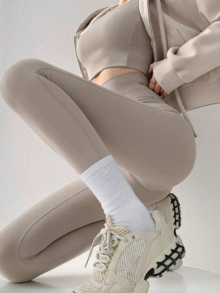 SHEIN سروال نسائي ضيق بلون كاكي بيج وخصر عالي