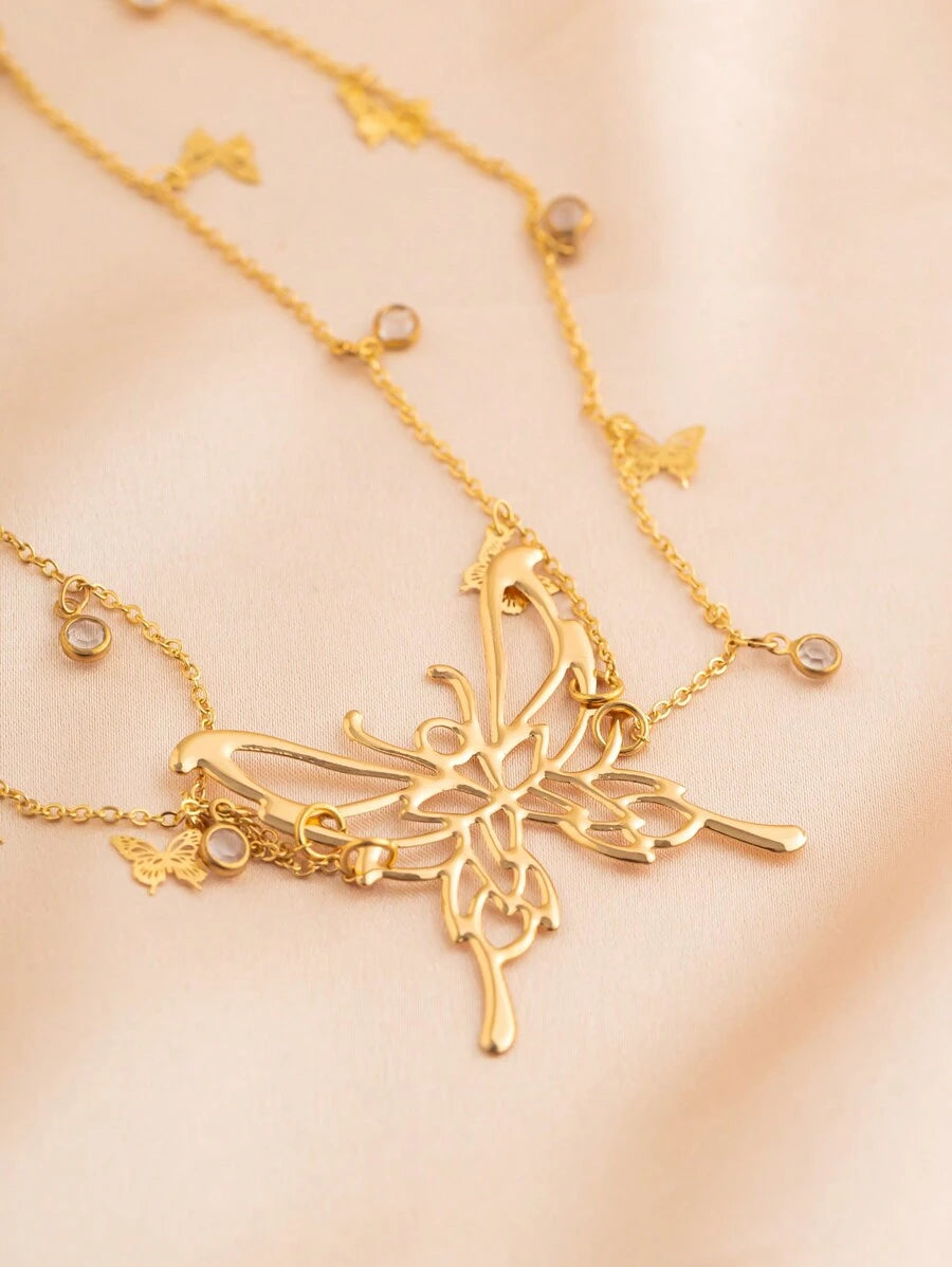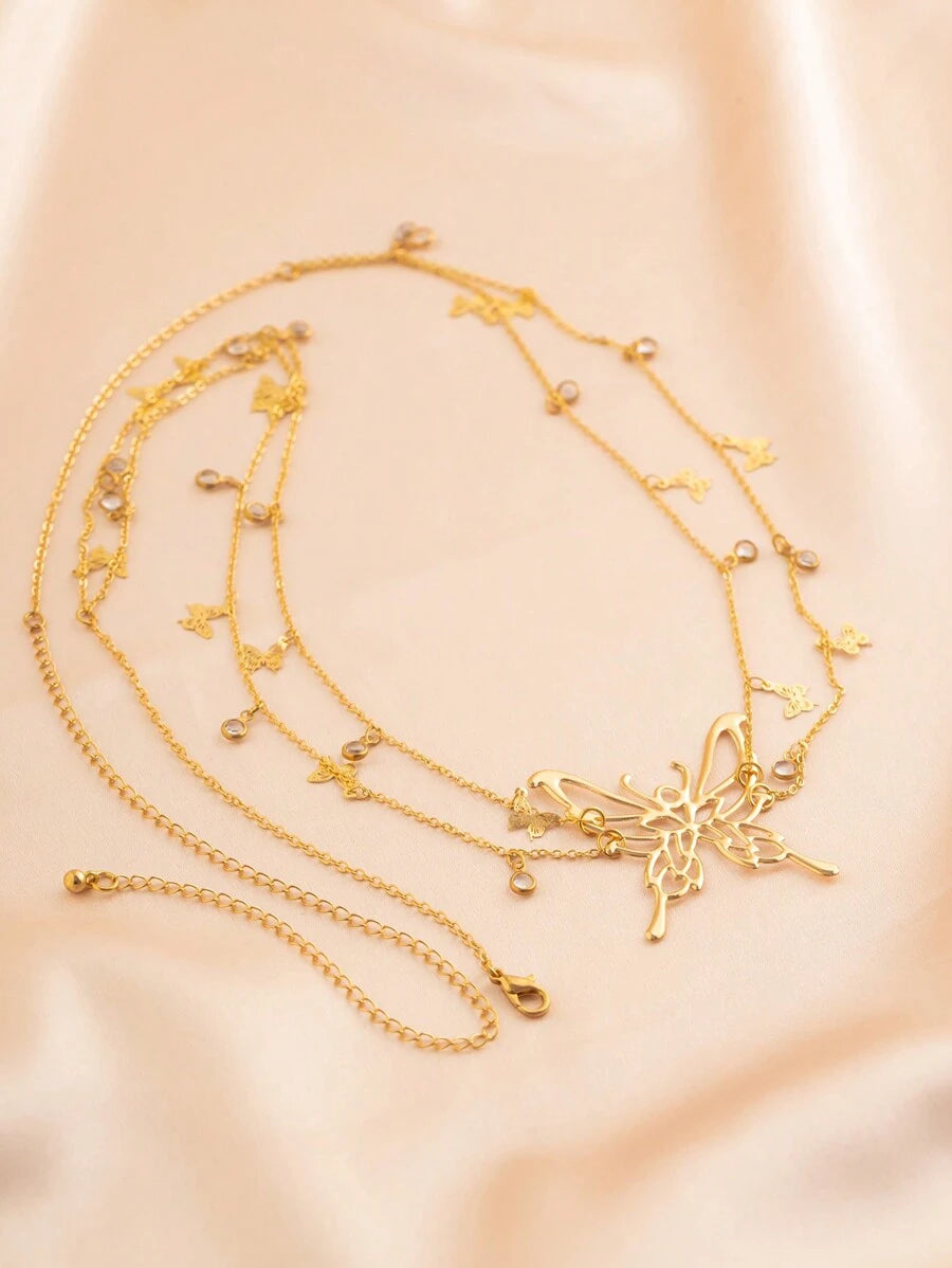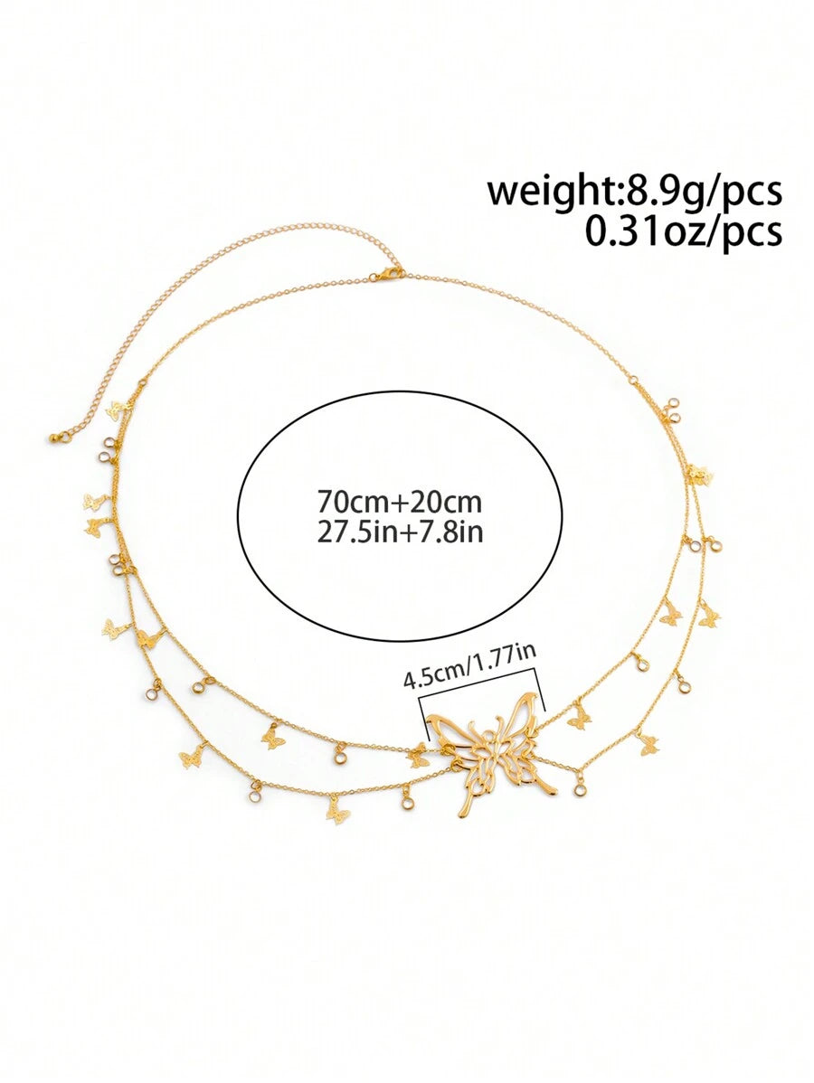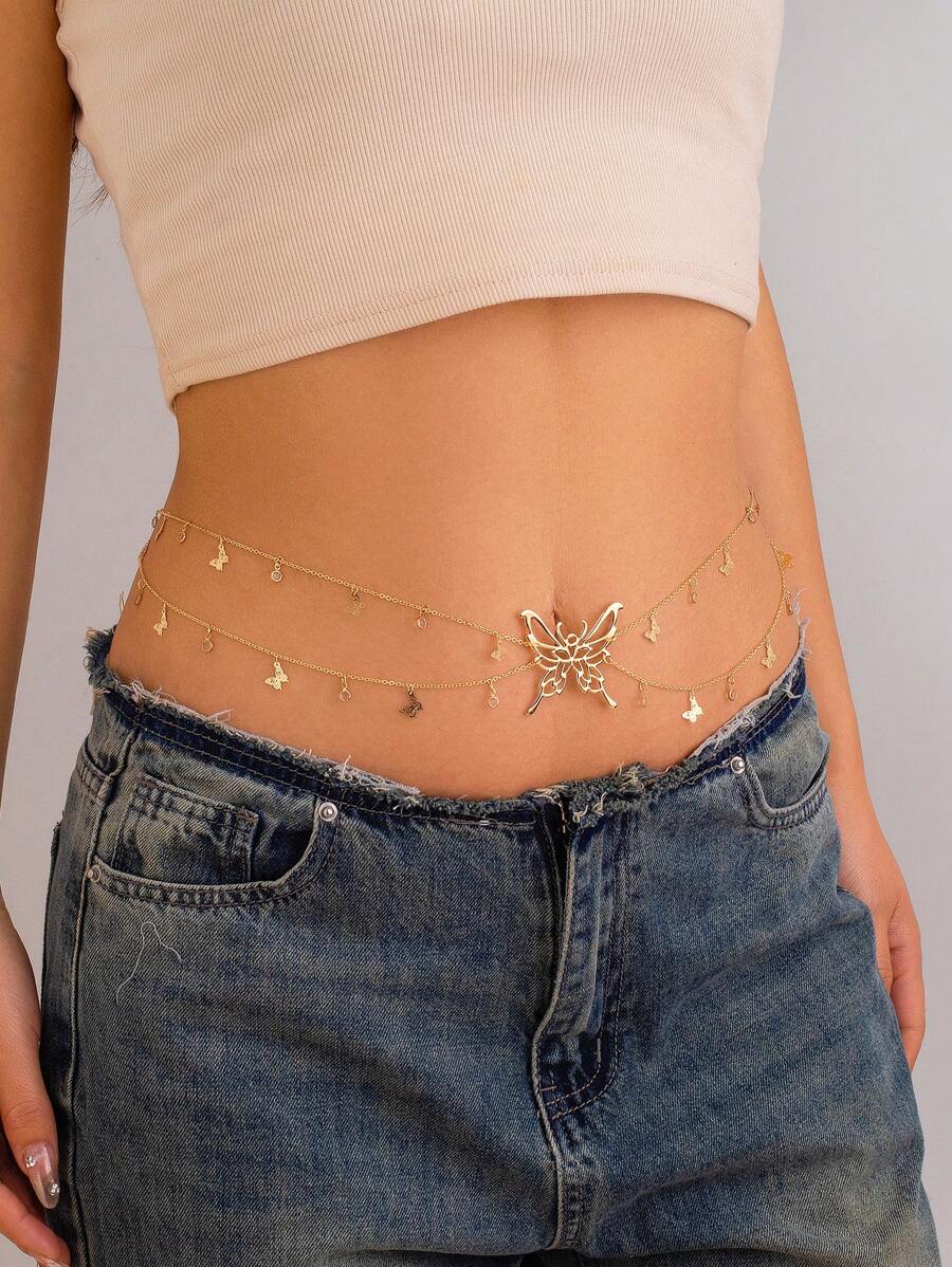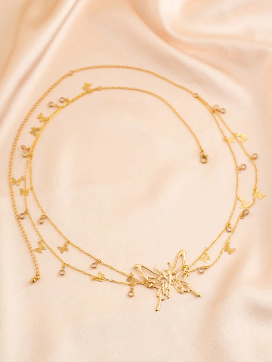 SHEIN سلسلة بطن متعددة الطبقات بتعليقة فراشة كريستال ذهبية