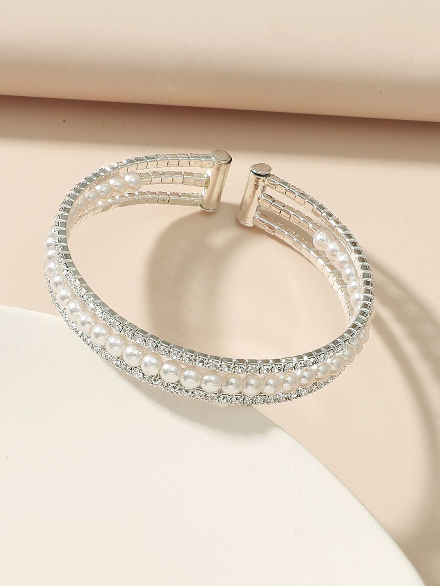 SHEIN سوار فضي مزين بالراين ولؤلؤ اصطناعي