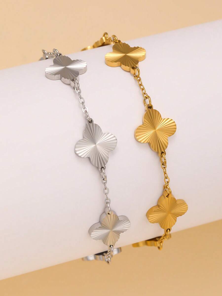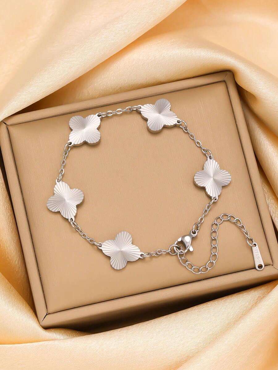 SHEIN سوار فولاذ شرائط مموج مع نقش ورقة برسيم