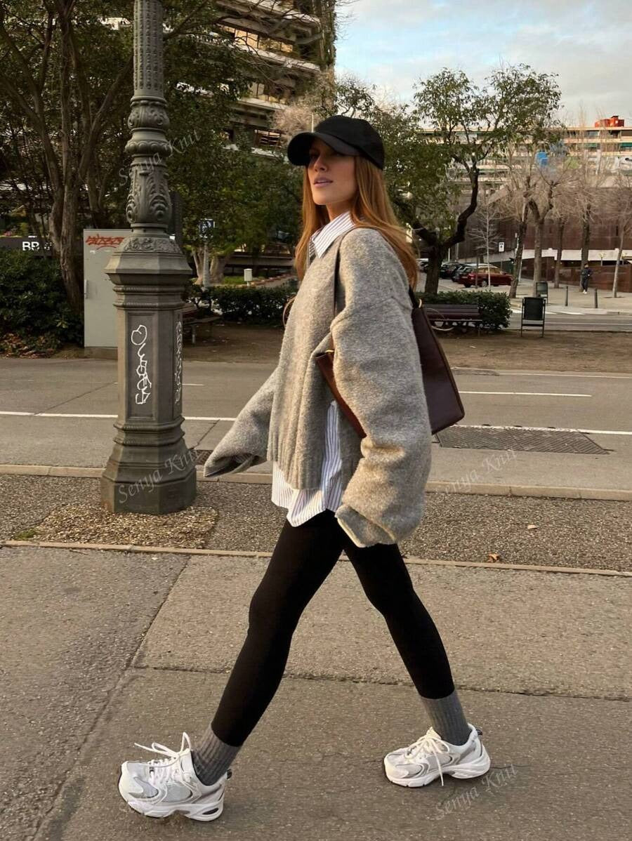 كنزة صوفية رمادية بياقة دائرية وشق جانبي – ستايل بسيط ومريح 👕
