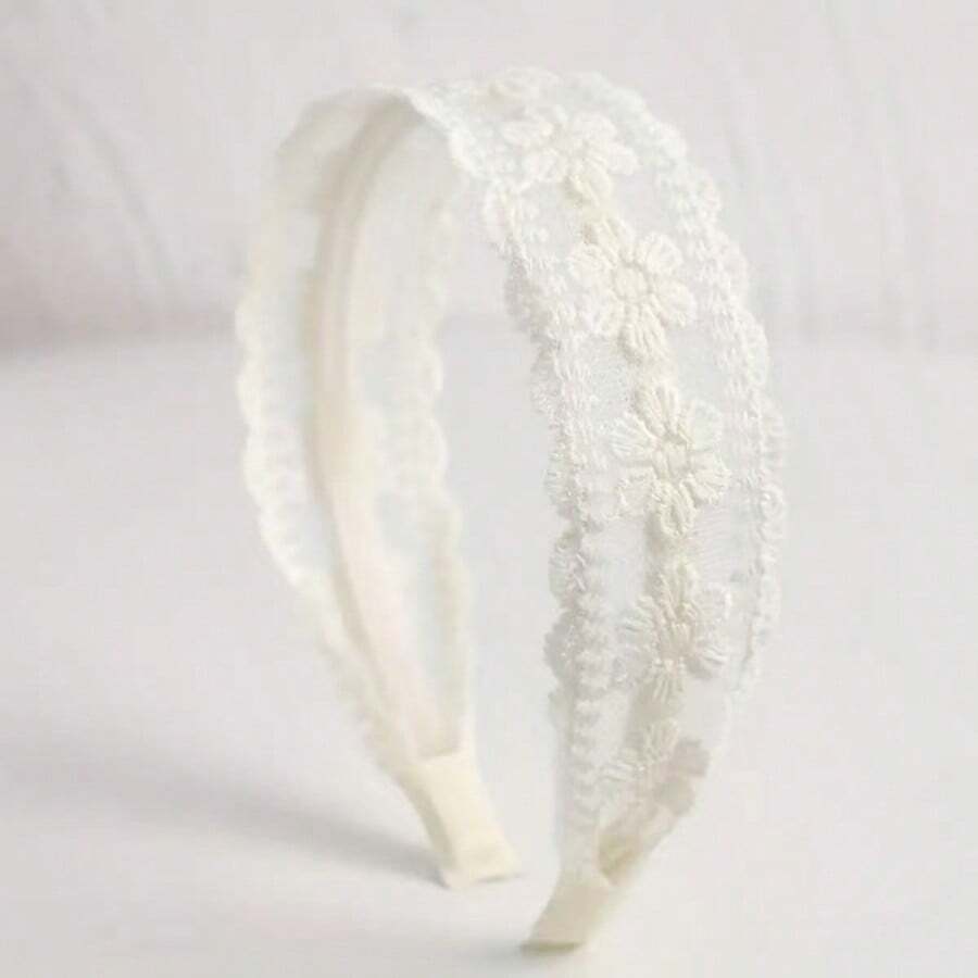 🤍✨ شريط رأس أبيض مطرز بطراز فرنسي ⚪