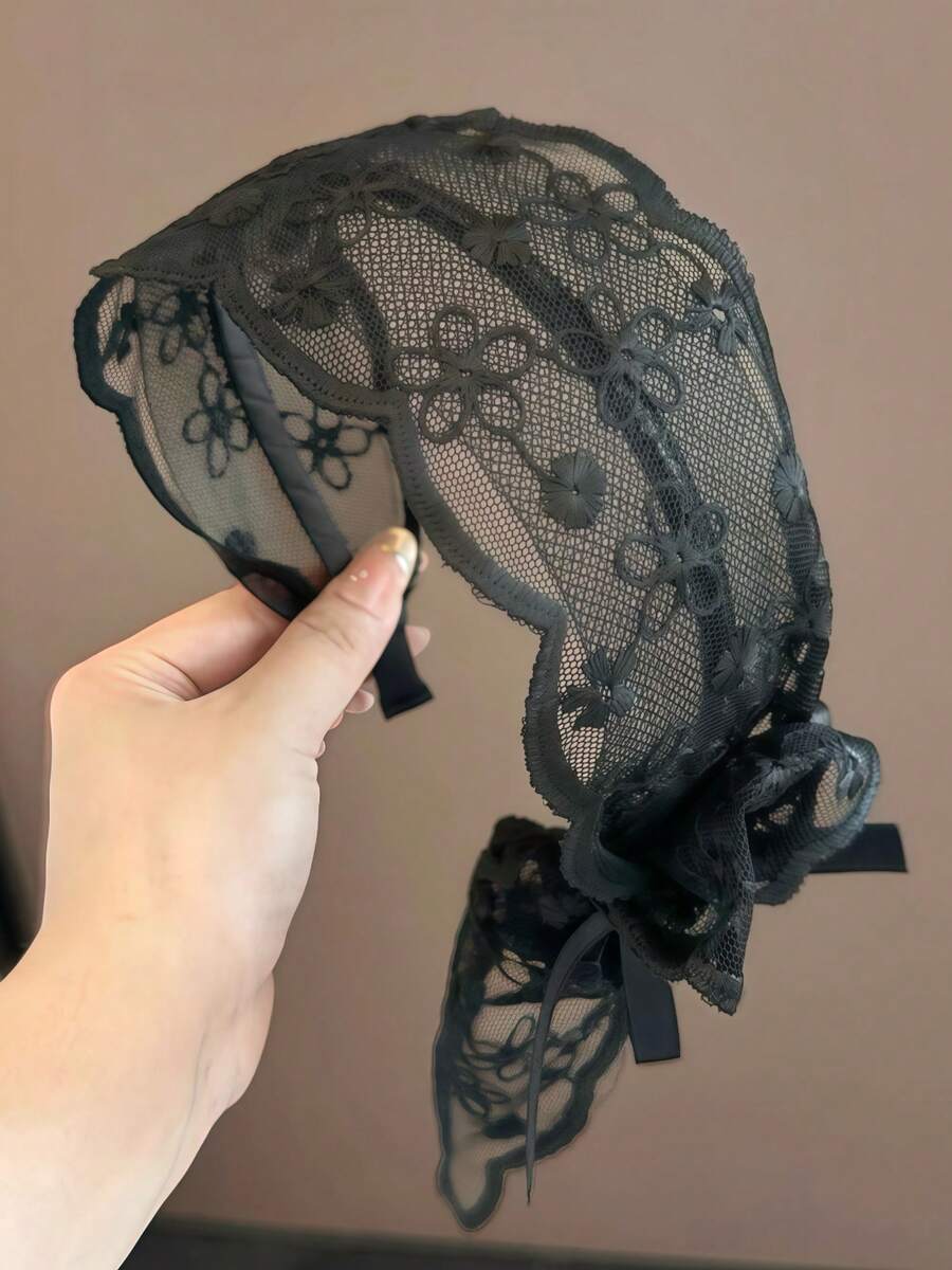 شريط شعر أنيق بتصميم فيونكة من الدانتيل وعصابة رأس عريضة بضغط عالي