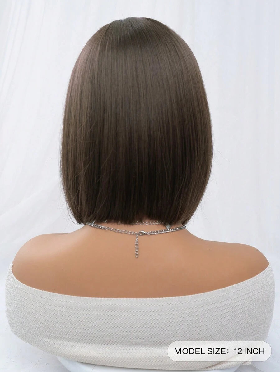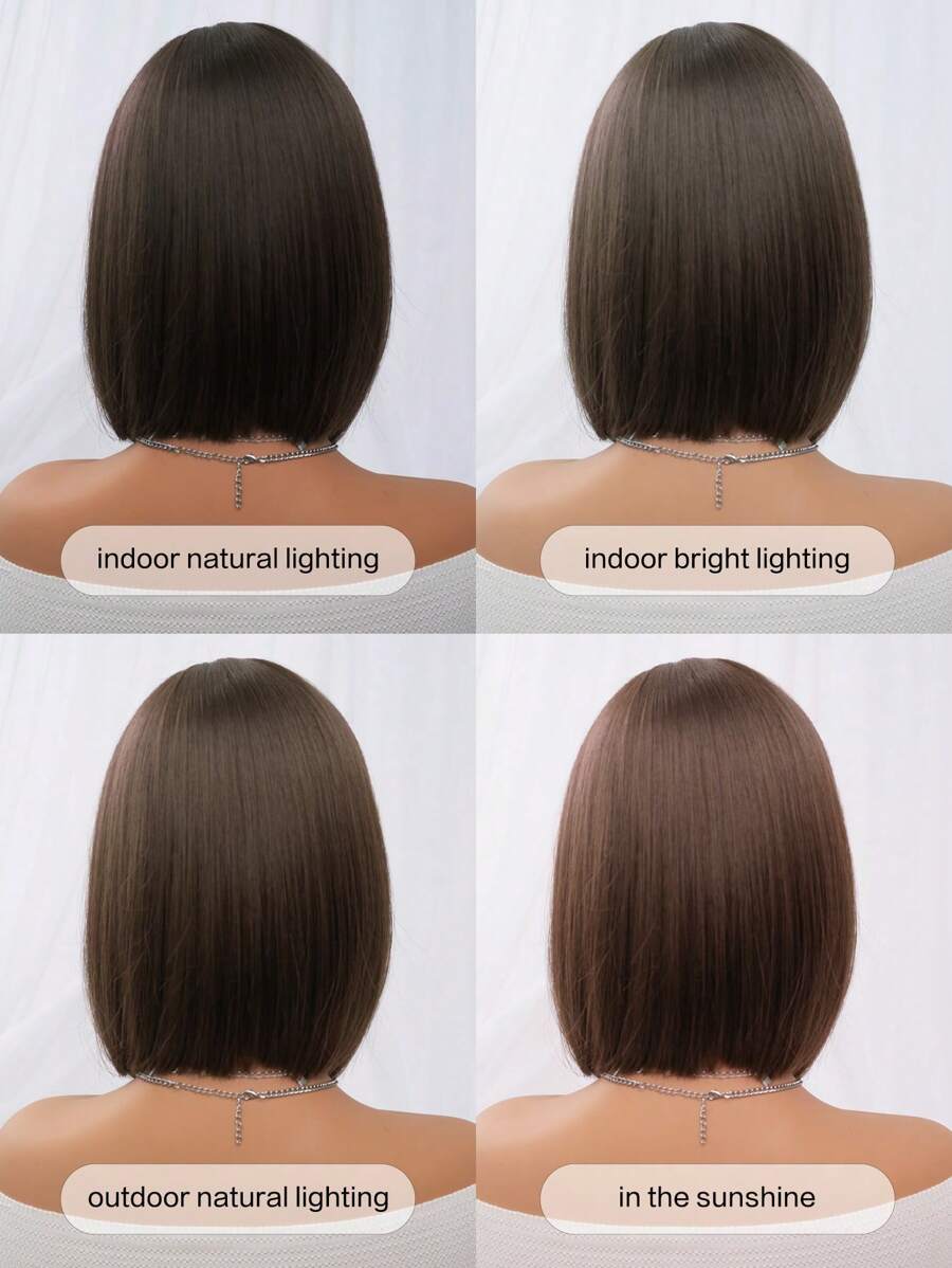SHEIN شعر بني مستعار مستقيم 12 بوصة مقاوم للحرارة