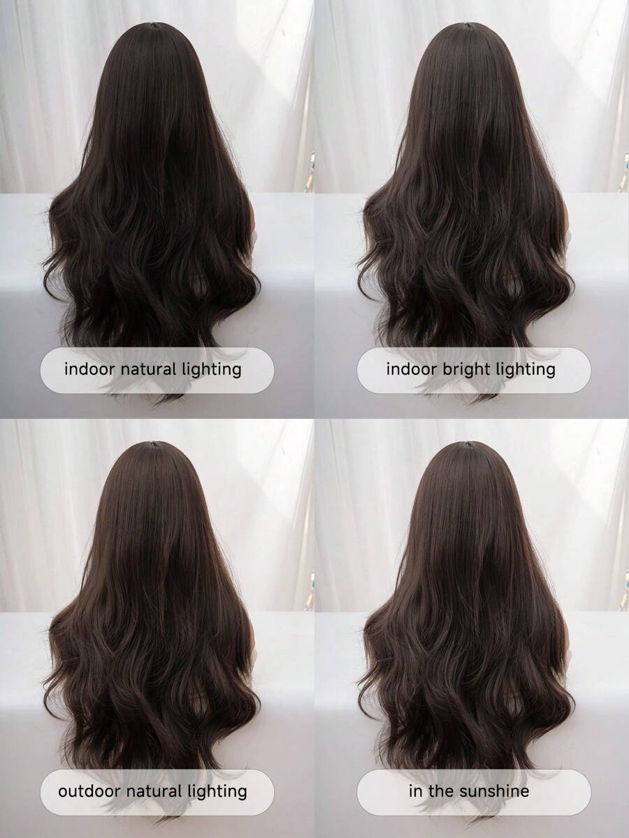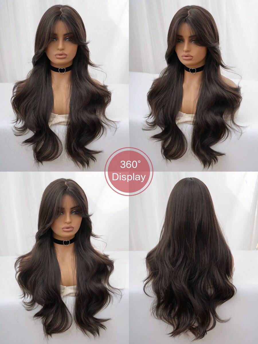 💇♀️✨ شعر مستعار طويل مموج مع غرة – بني طبيعي للسيدات 🌰