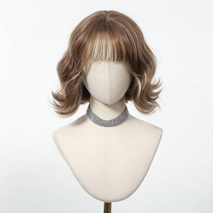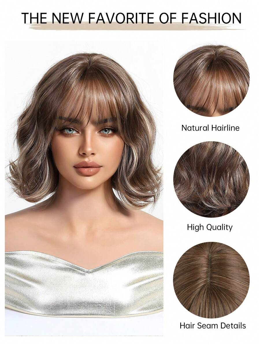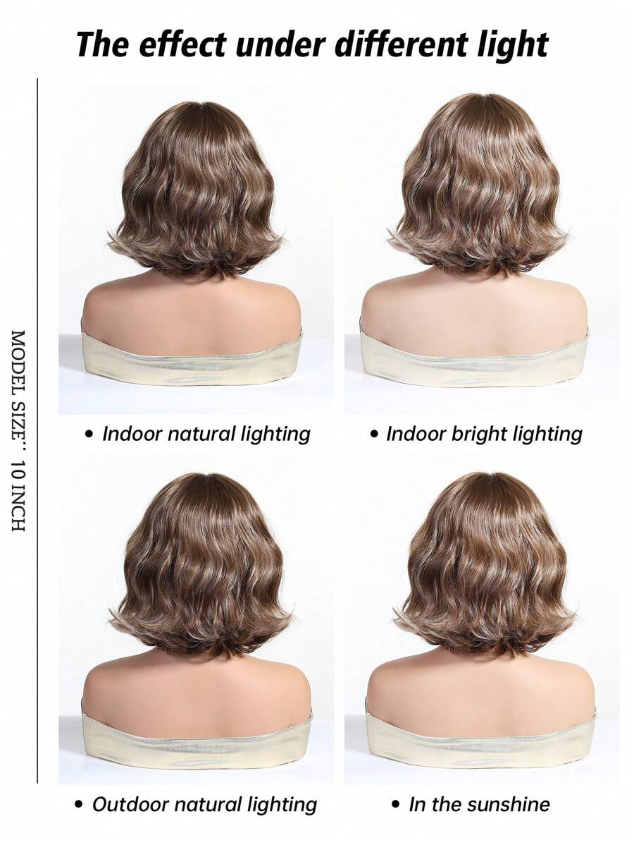 SHEIN شعر مستعار بني قصير مموج 12 بوصة مقاوم للحرارة