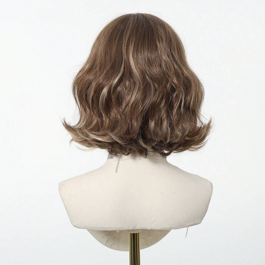 💇♀️✨ باروكة شعر قصير مموج – تدرجات بني للسيدات 🌰✨