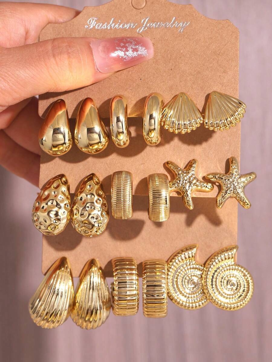 SHEIN طقم أقراط ذهبي صيفي نجمة بحر