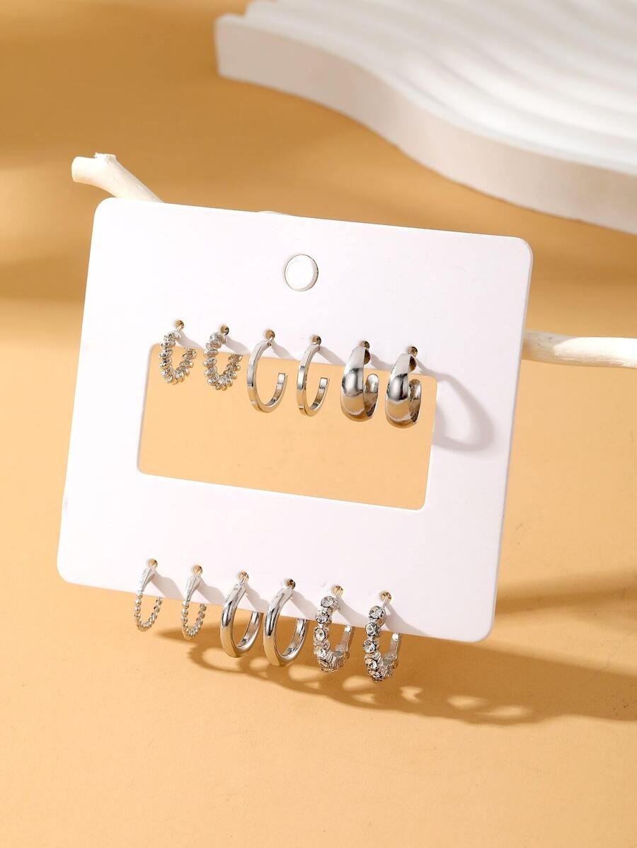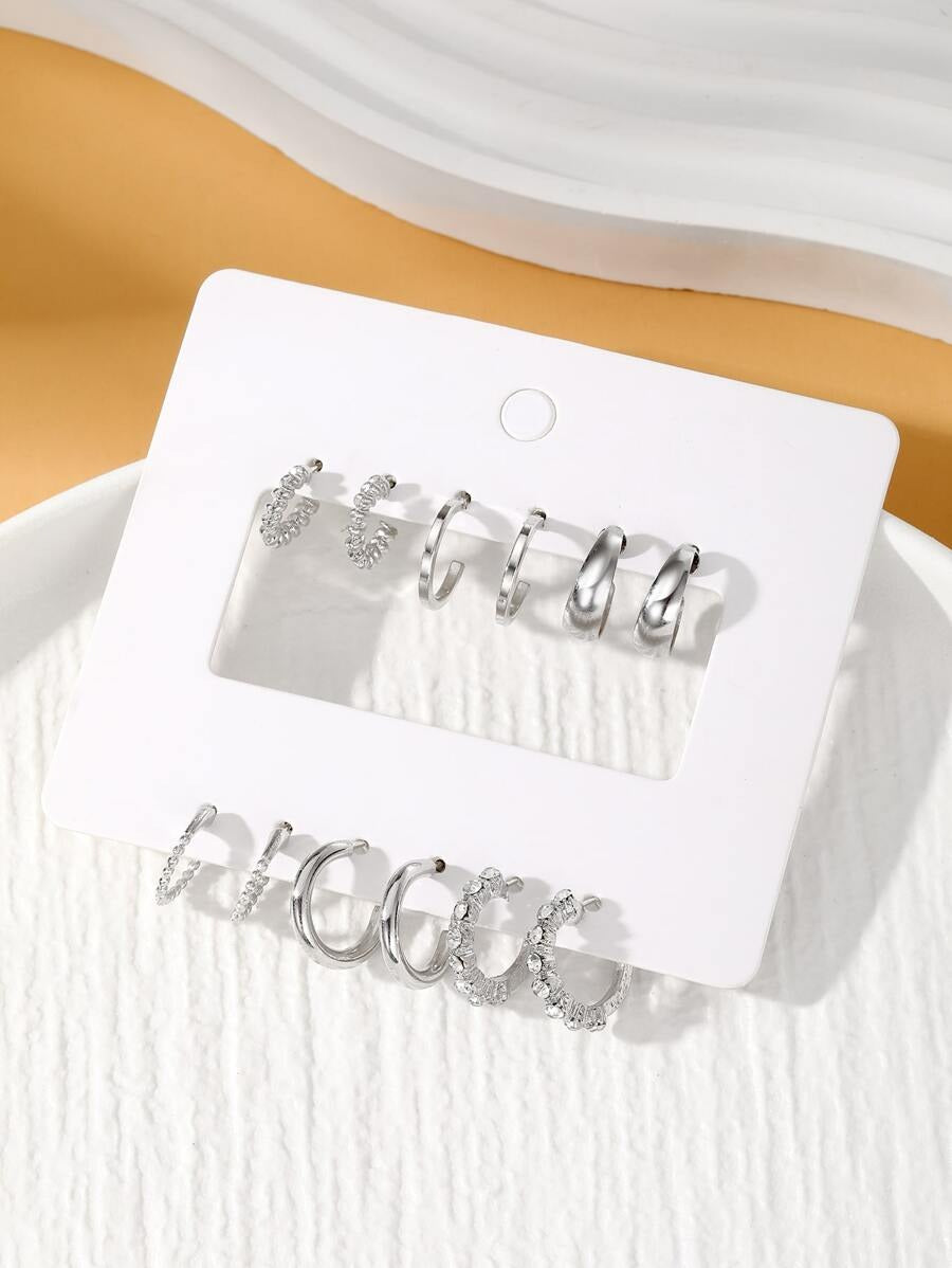 SHEIN طقم 12 أقراط فضية بسيط