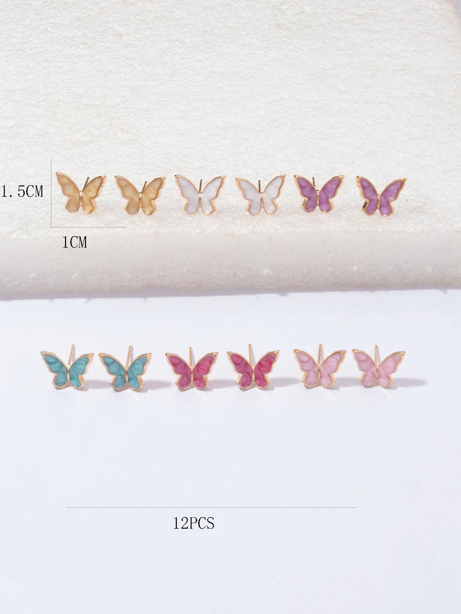 🦋 طقم 6 أزواج أقراط مسمارية – فراشة لطيفة