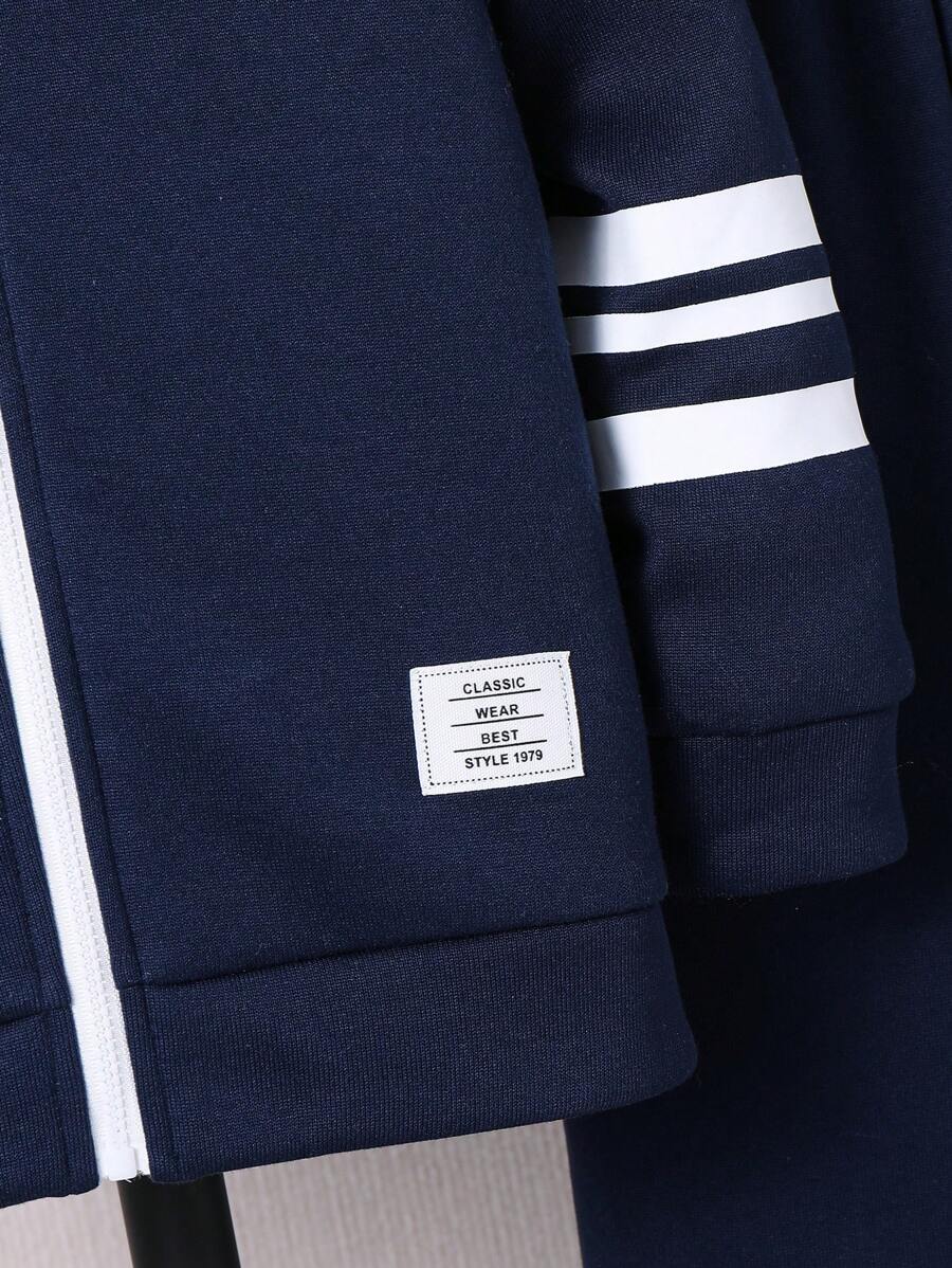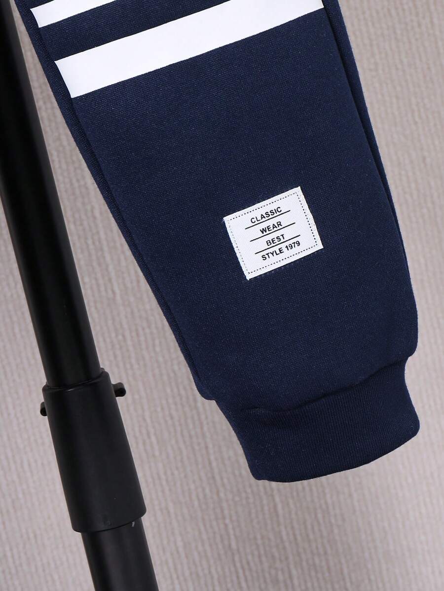 مجموعة مريحة وعملية للارتداء اليومي والمدرسة والرياضة، بخطوط نيلي وحرف أبيض أنيق.المواصفات:
