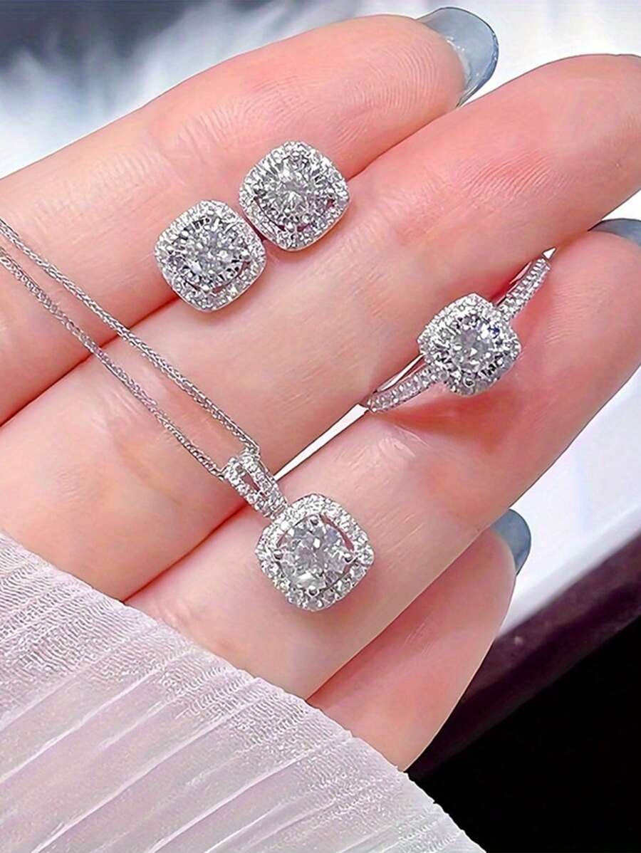 SHEIN طقم فضة 4 قطع مزين ألماس