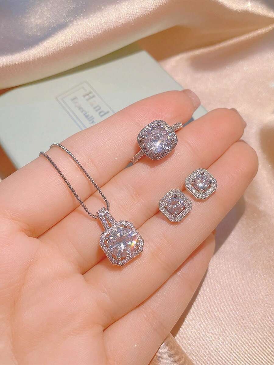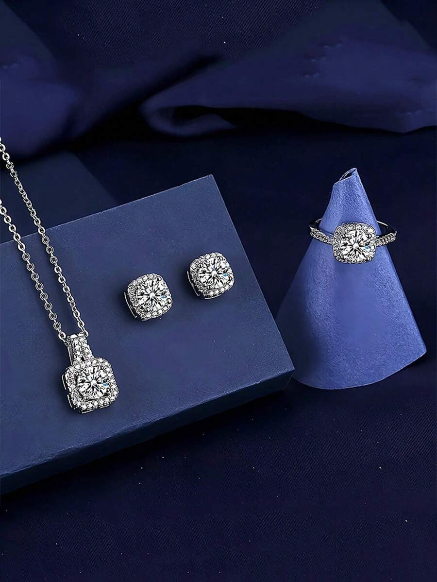 4 قطع/مجموعة من الإكسسوارات تشمل أقراط، قلادة، وخاتم، بطراز فاخر وأنيق، هدية عصرية للنساء.