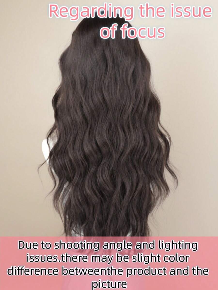 باروكة أمامية من الشعر الصناعي المبطن 13x4 لحم، بطول 24 بوصة، مصممة بألياف مقاومة للحرارة حتى 100°. تصميم مجعد "وتر ويف" يمنحك مظهرًا طبيعيًا وناعمًا