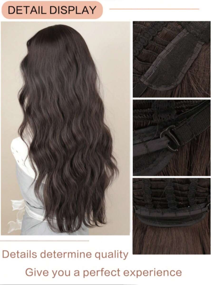 SHEIN طقم باروكة أمامية شعر صناعي 24 بوصة أسود بني