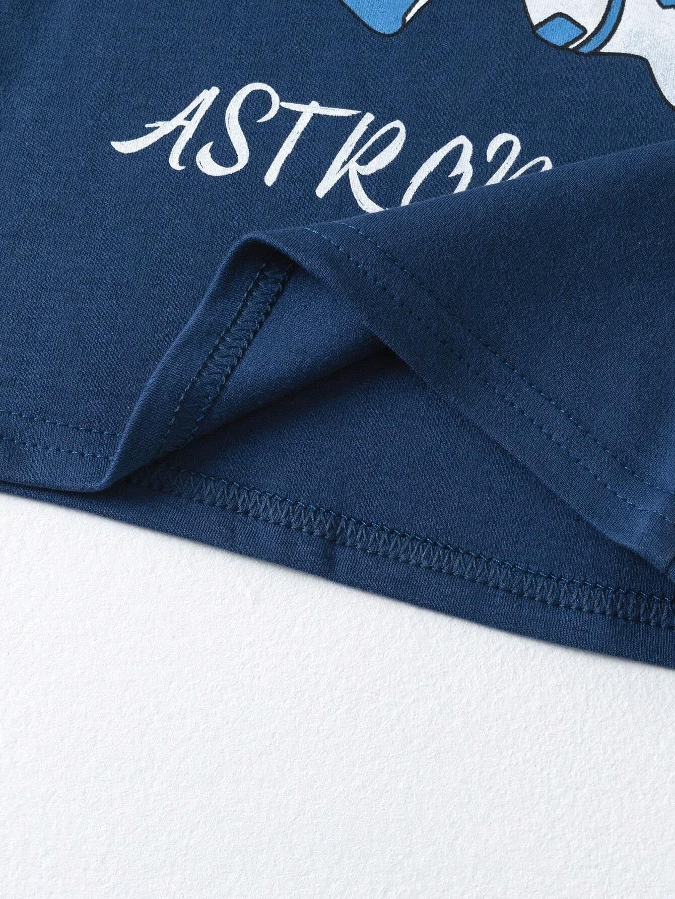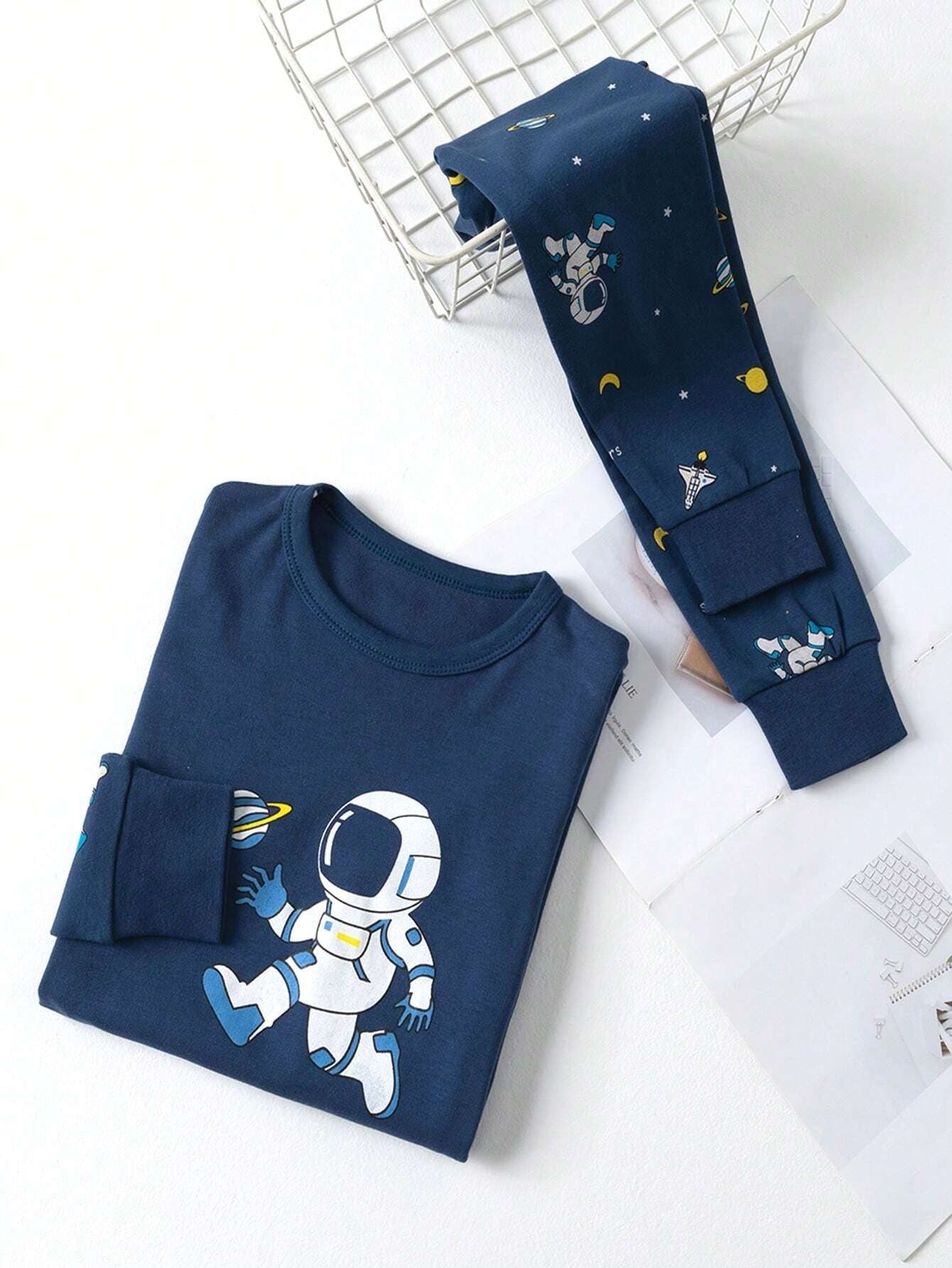 SHEIN طقم بيجاما مريح بطبعة طفل أزرق فضائي