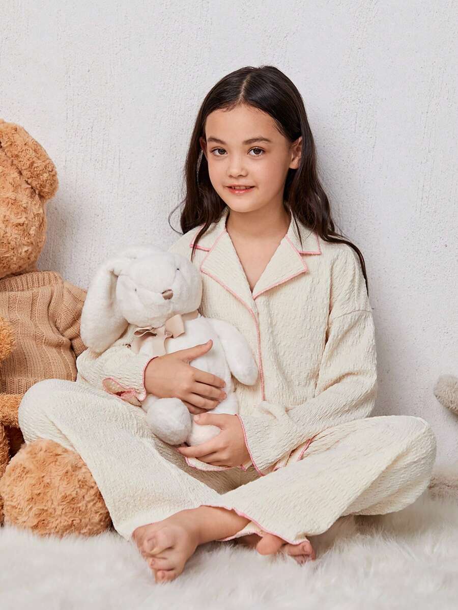 SHEIN طقم بيجامة شريط متباين منخفض الاكتاف قطعة واحدة بنت طفل