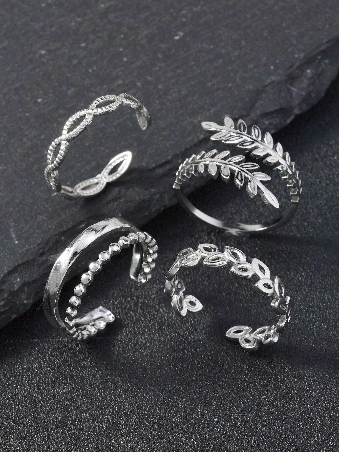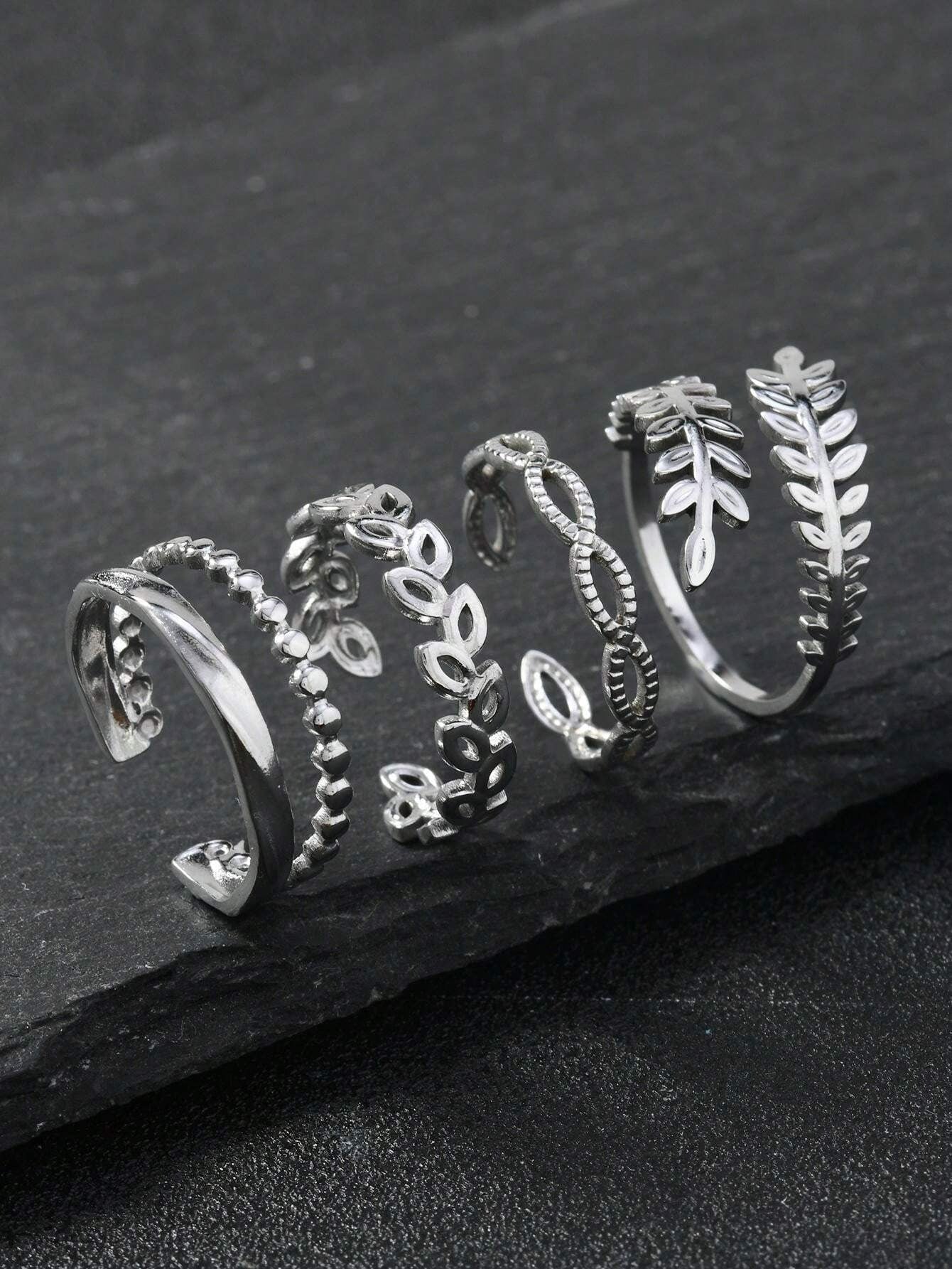 SHEIN طقم خواتم ستانلس ستيل – 4 قطع