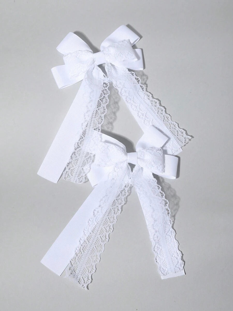 طقم ربطات شعر دانتيل بيضاء بتصميم فيونكة (قطعتان) 🎀✨