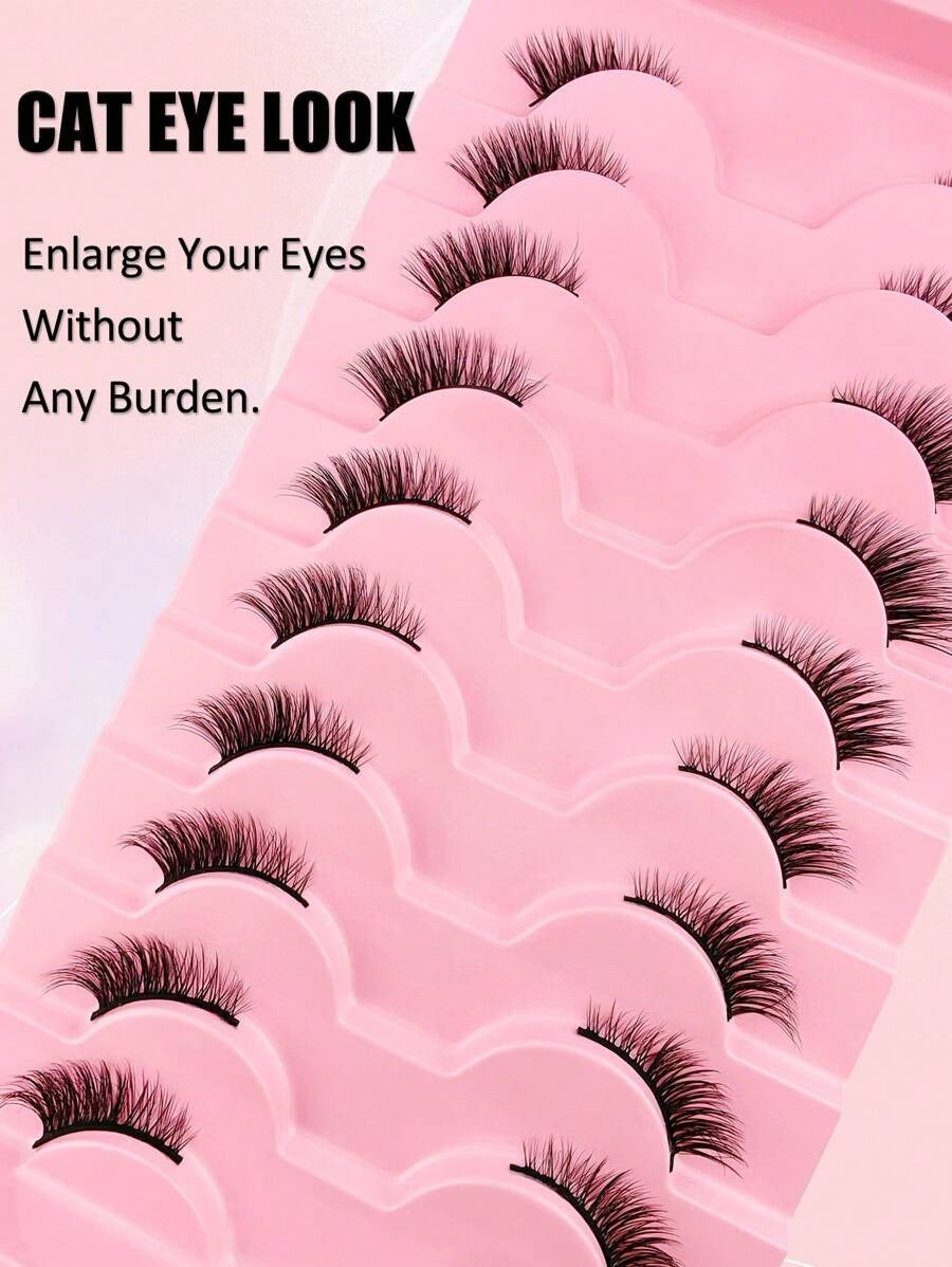 رموش نصفية طبيعية – 10 أزواج لعيون القطة 👁️✨