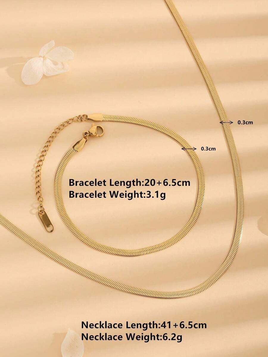 ✨ مجموعة مكونة من قلادة وسوار من السلسلة المسطحة على شكل ثعبان