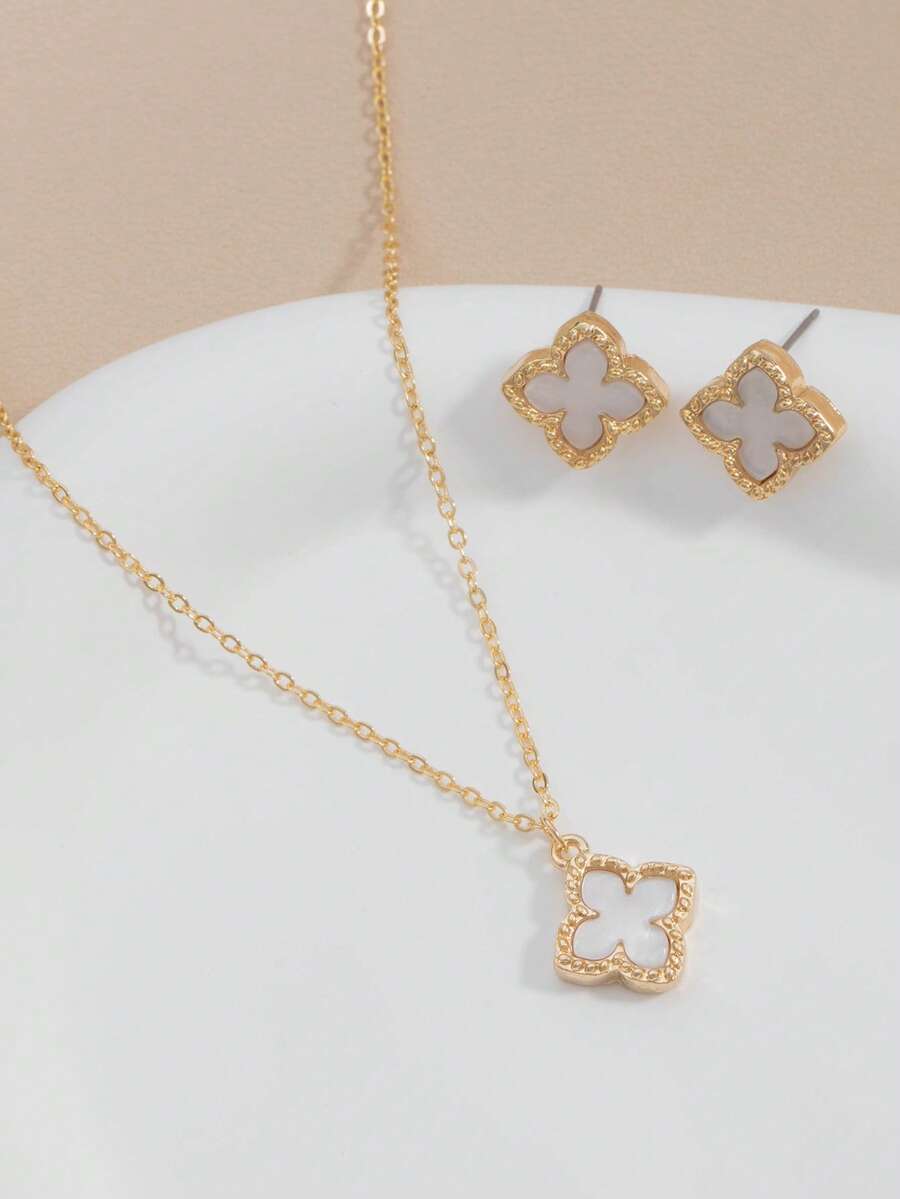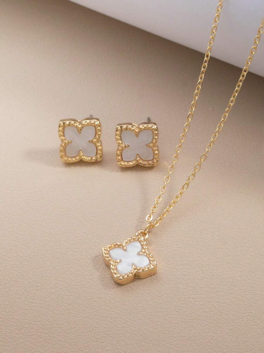 SHEIN طقم قلادة وأقراط قلب وصدفة ذهبية