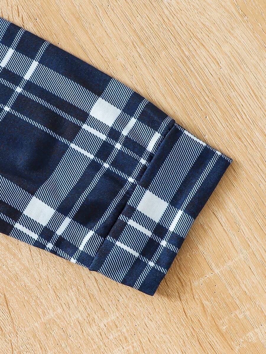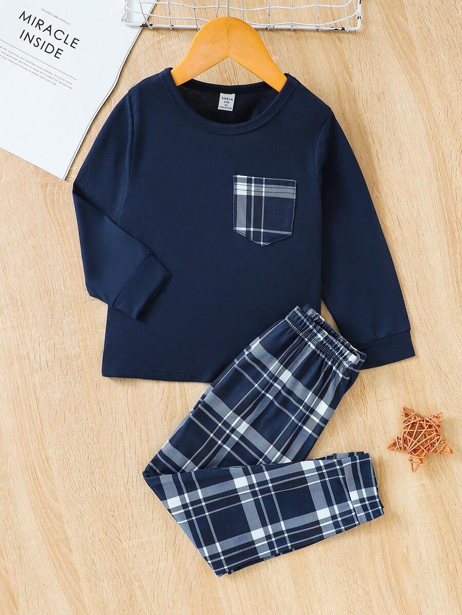 SHEIN طقم قميص وبنطال مربعات للأطفال بأكمام طويلة كاجوال