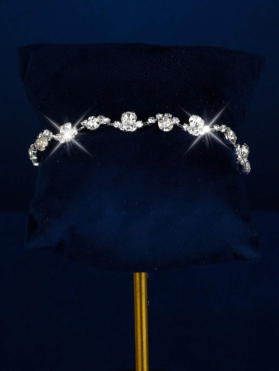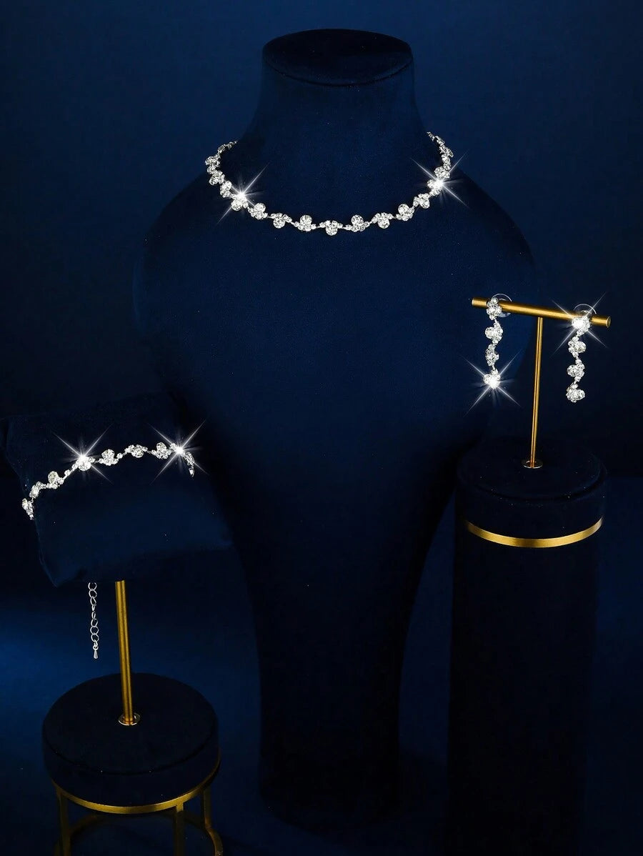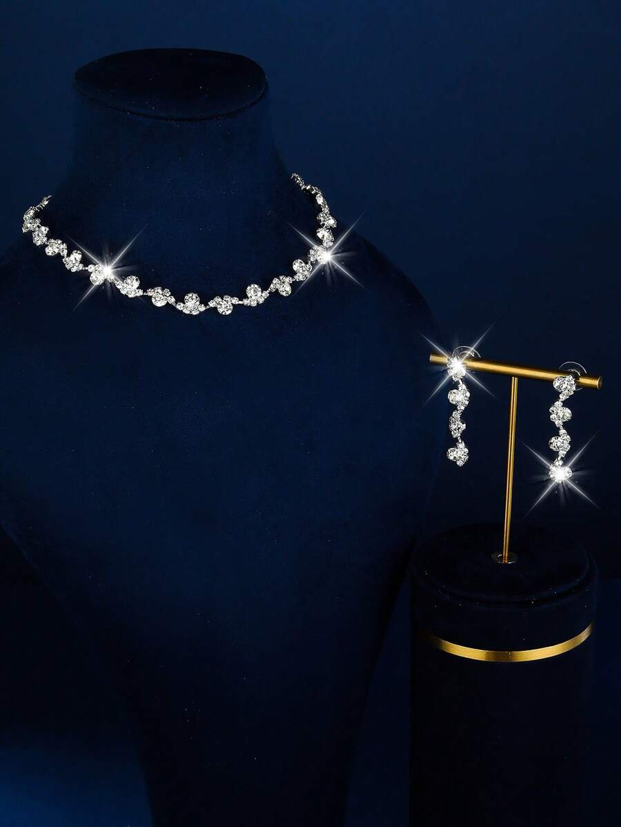 SHEIN طقم مجوهرات بيضاء قلادة وأقراط وأساور مرصعة بالراين