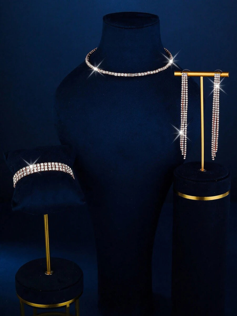 SHEIN طقم مجوهرات ذهبية قلادة وأقراط وأساور لامعة