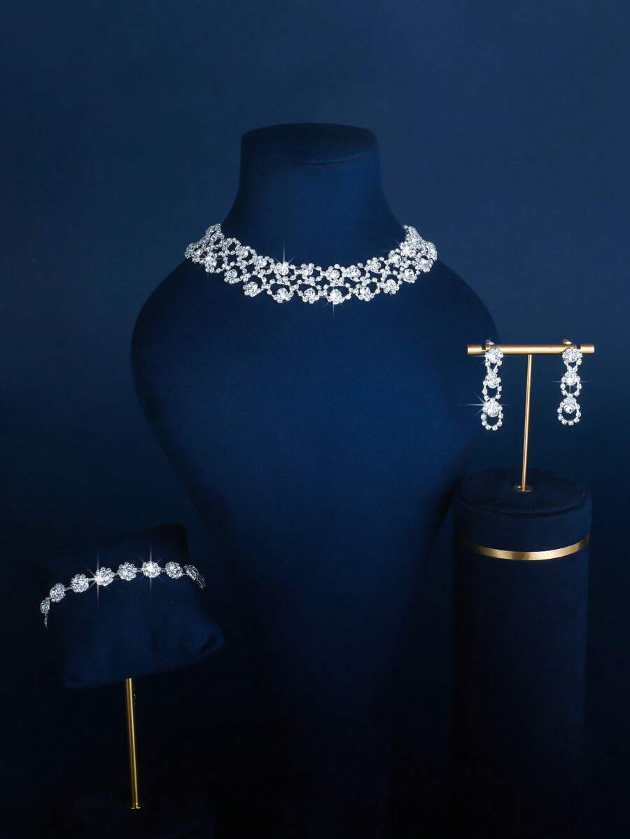 🤍 طقم مجوهرات أبيض فاخر من ثلاث قطع