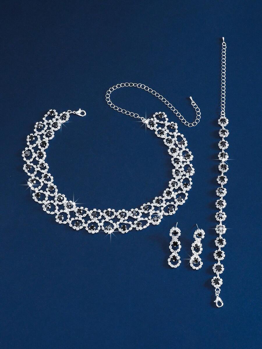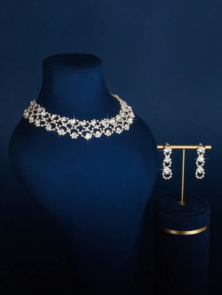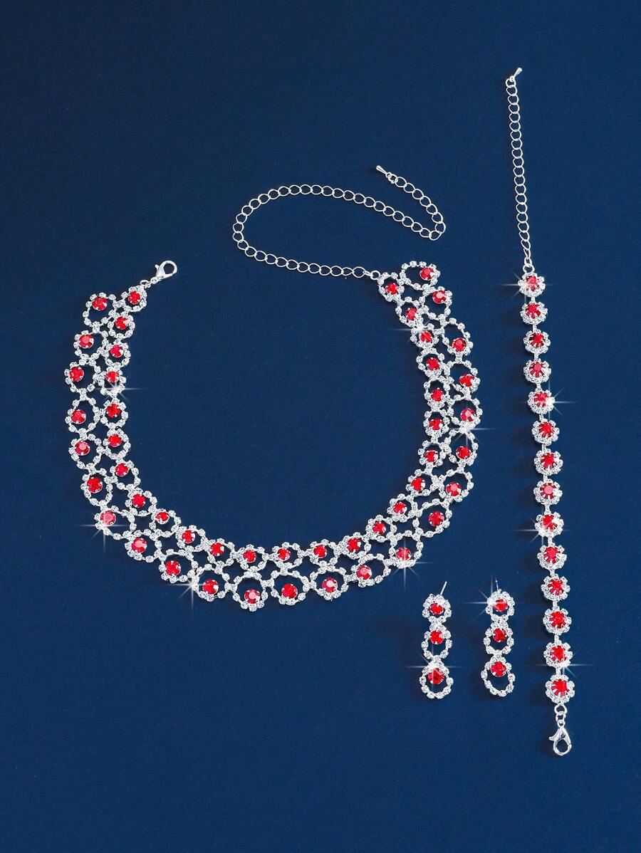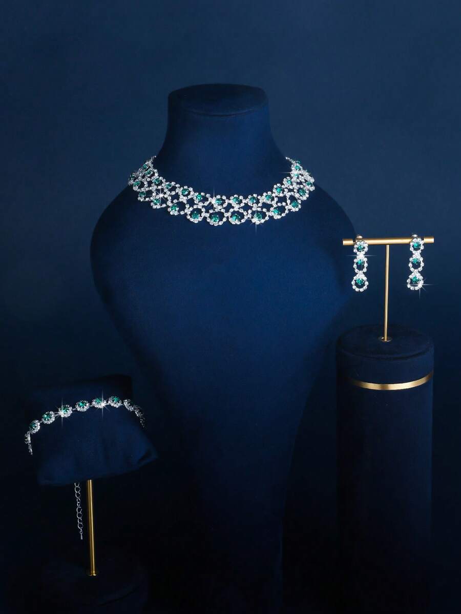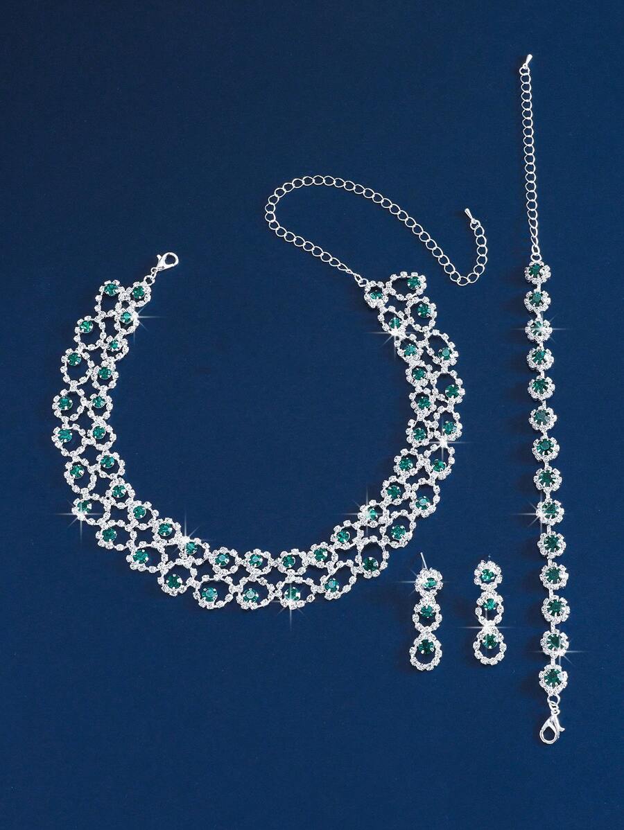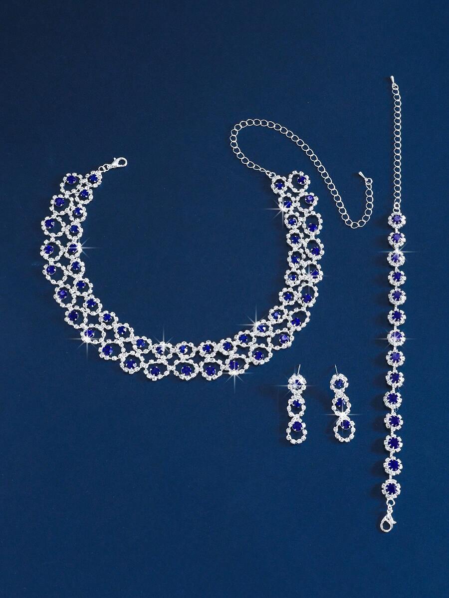 مجموعة أنيقة مكونة من عقد مرصع بالراين، قلادة وأساور، مثالية لإطلالات الزفاف والحفلات والاستقبال، ويمكن ارتداؤها أيضًا يوميًا لمزيد من الأناقة.المواصفات: