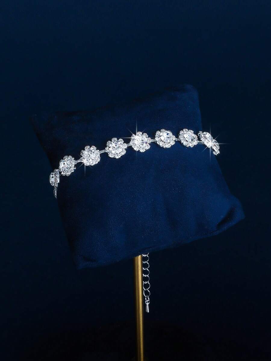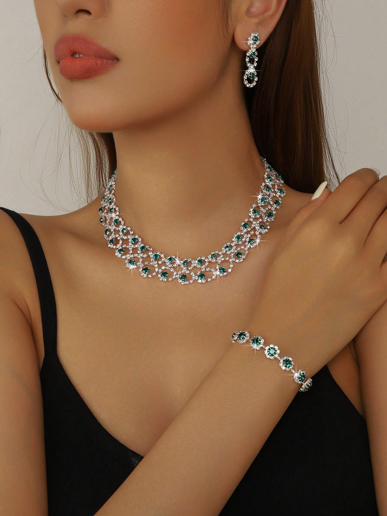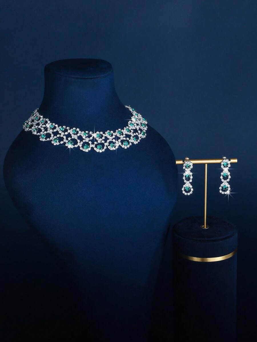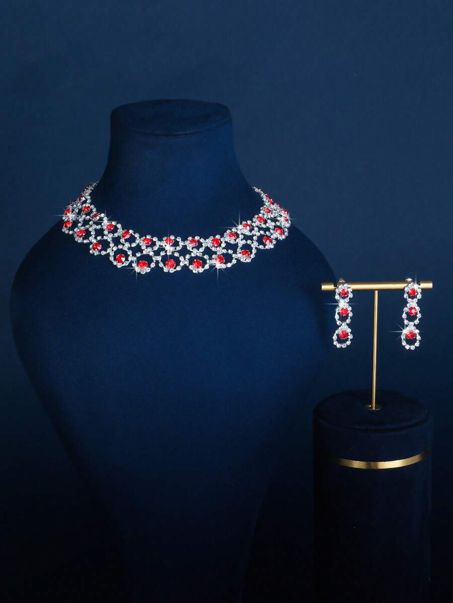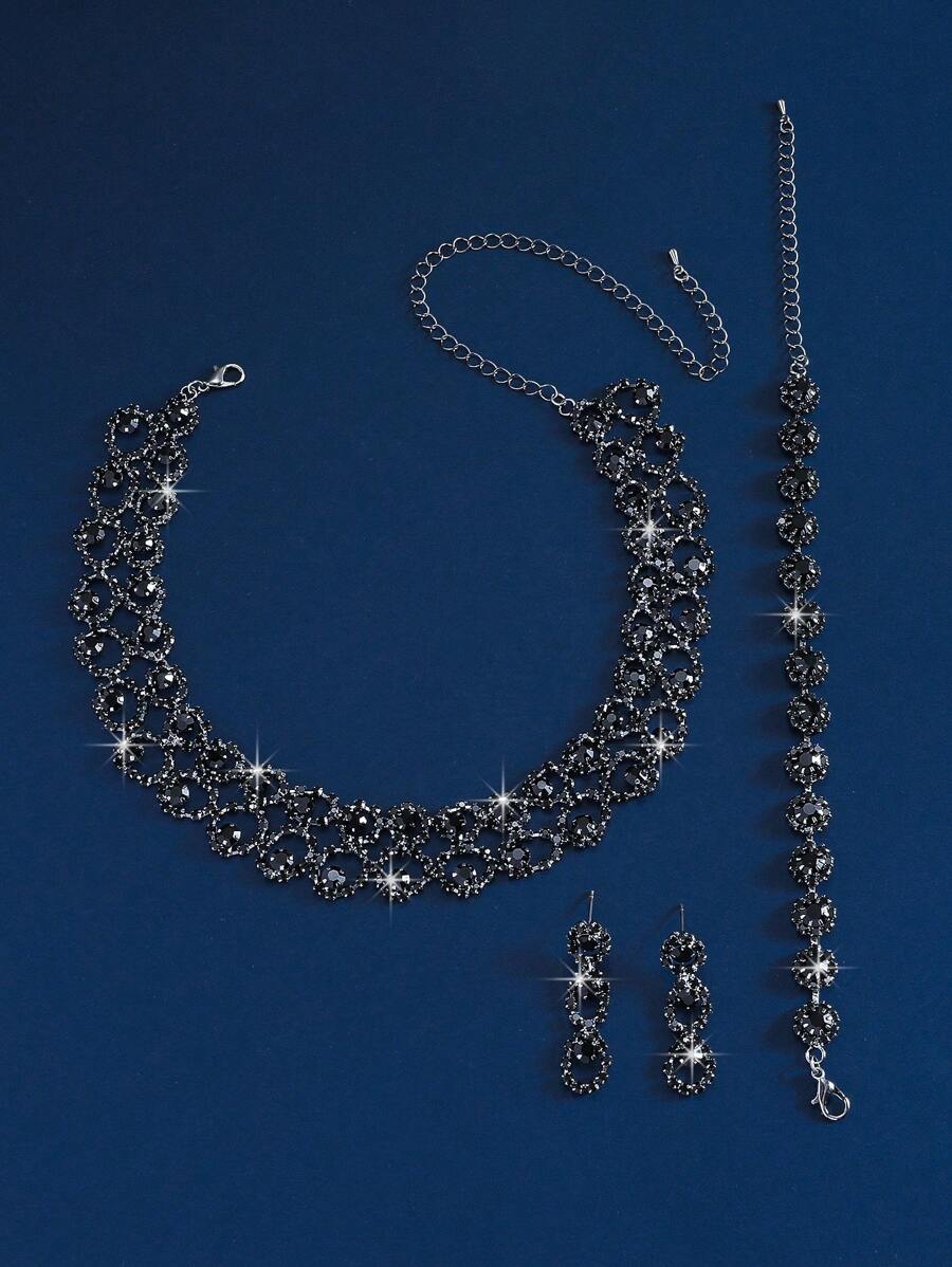 مجموعة أنيقة مكونة من عقد مرصع بالراين، قلادة وأساور، مثالية لإطلالات الزفاف والحفلات والاستقبال، ويمكن ارتداؤها أيضًا يوميًا لمزيد من الأناقة.المواصفات: