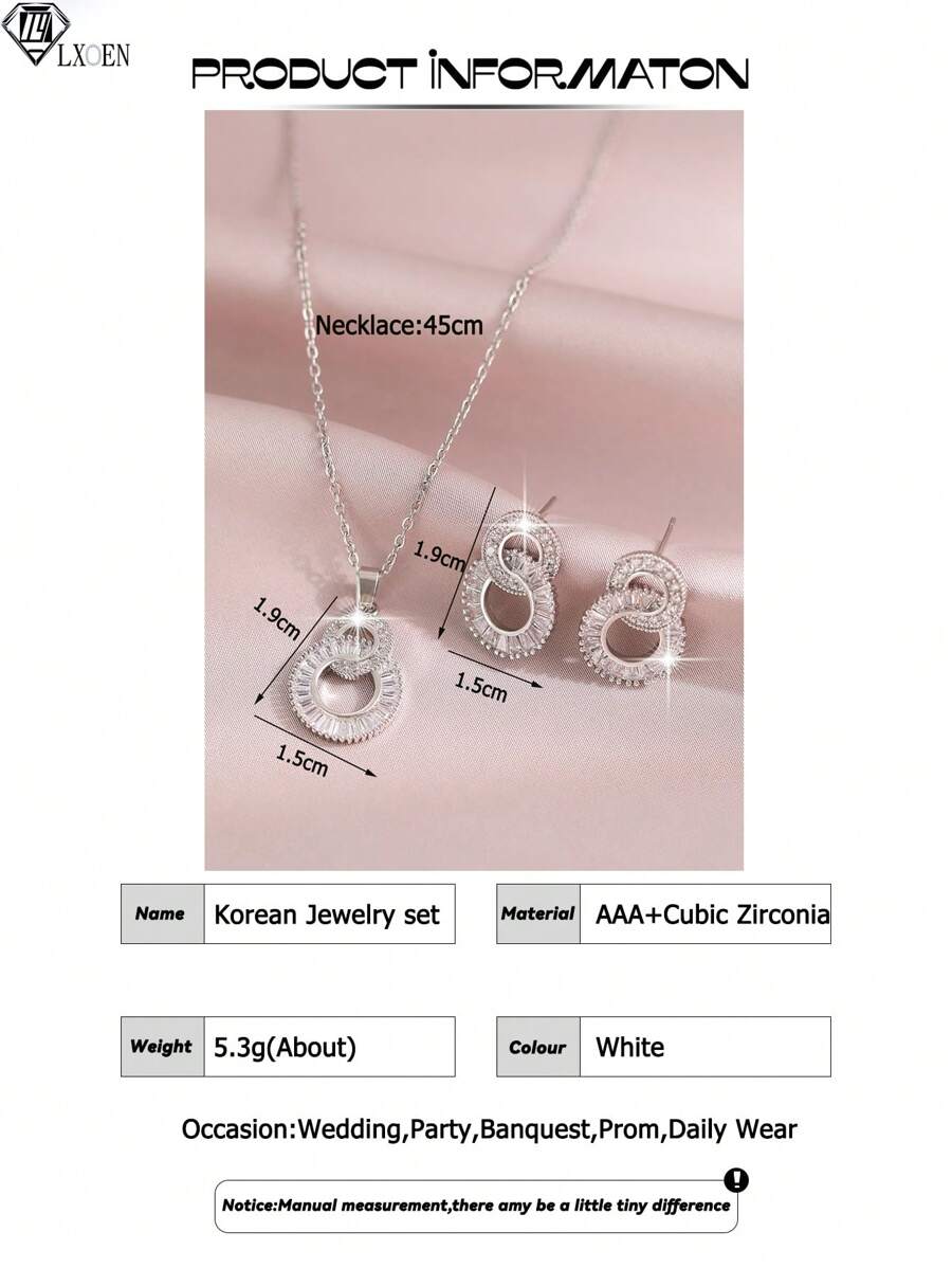 أقراط مزينة بنقوش رومانية وأرقام على شكل 8، مع قلادة فاخرة مرصعة بزيركونيا مكعبة، مثالي للارتداء اليومي والمناسبات.المواصفات:
