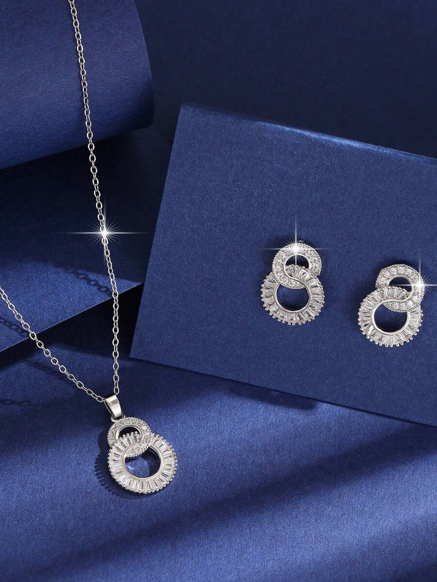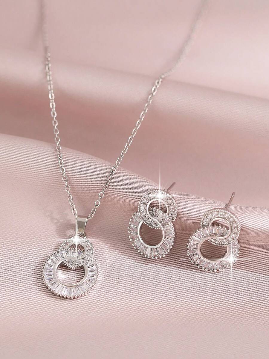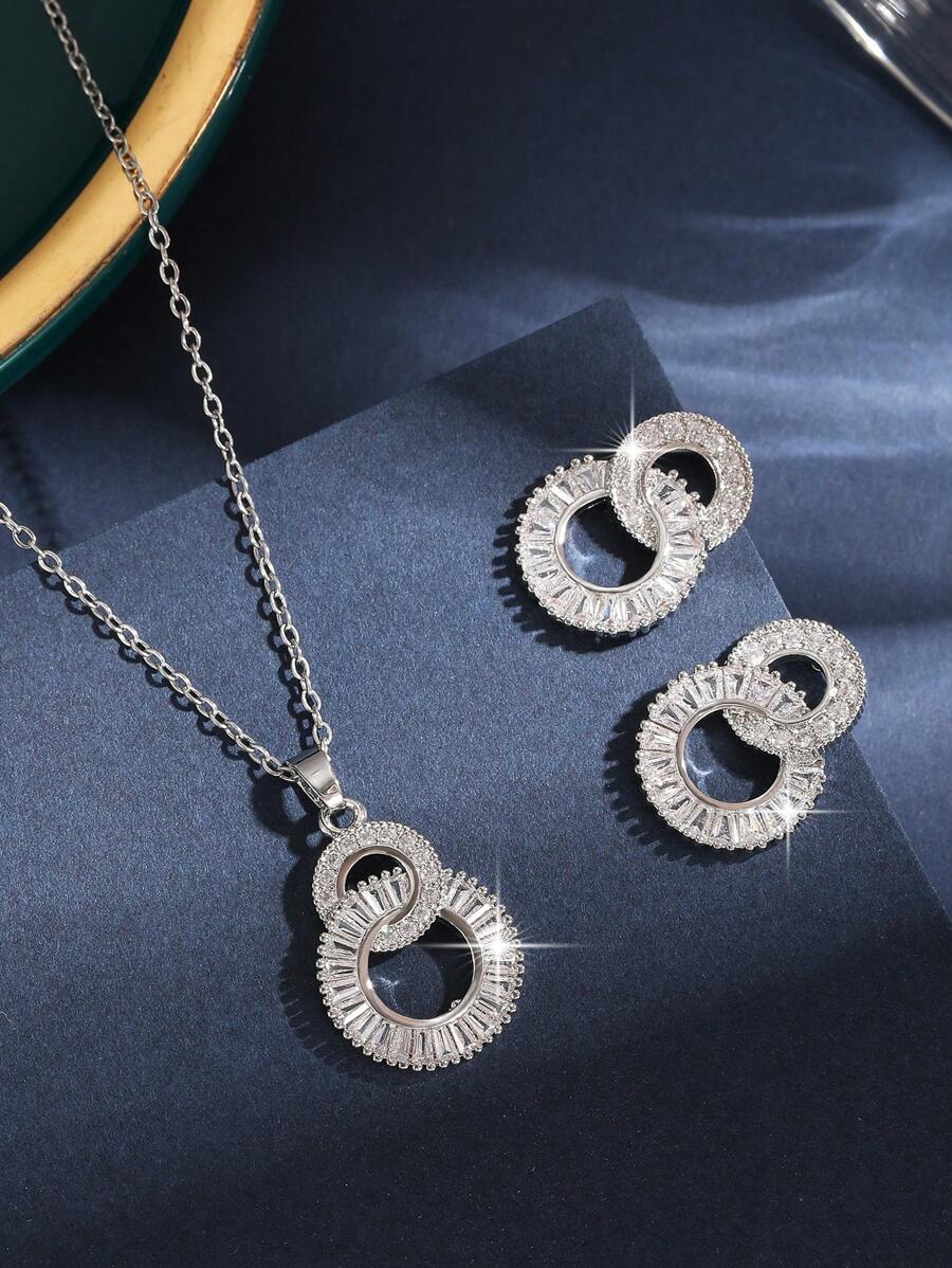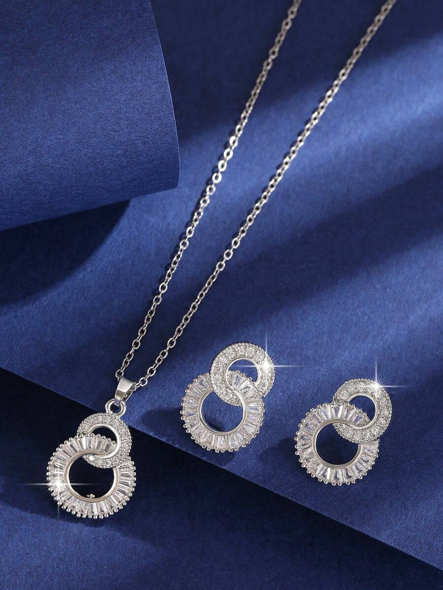 SHEIN طقم مجوهرات 3 قطع فضي مرصع بزيركونيا