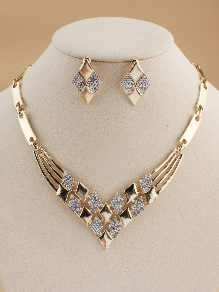 SHEIN طقم مجوهرات 3 قطع مطلي بالذهب ومرصع بالكريستال