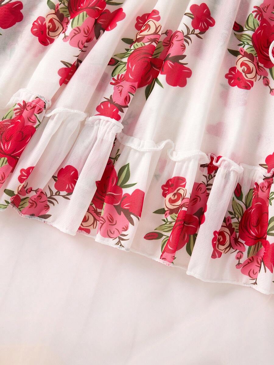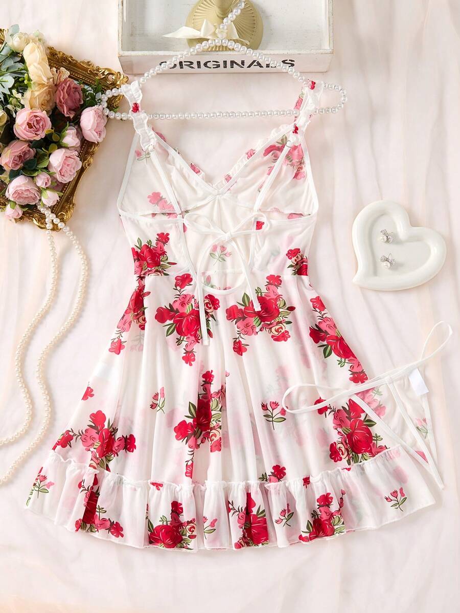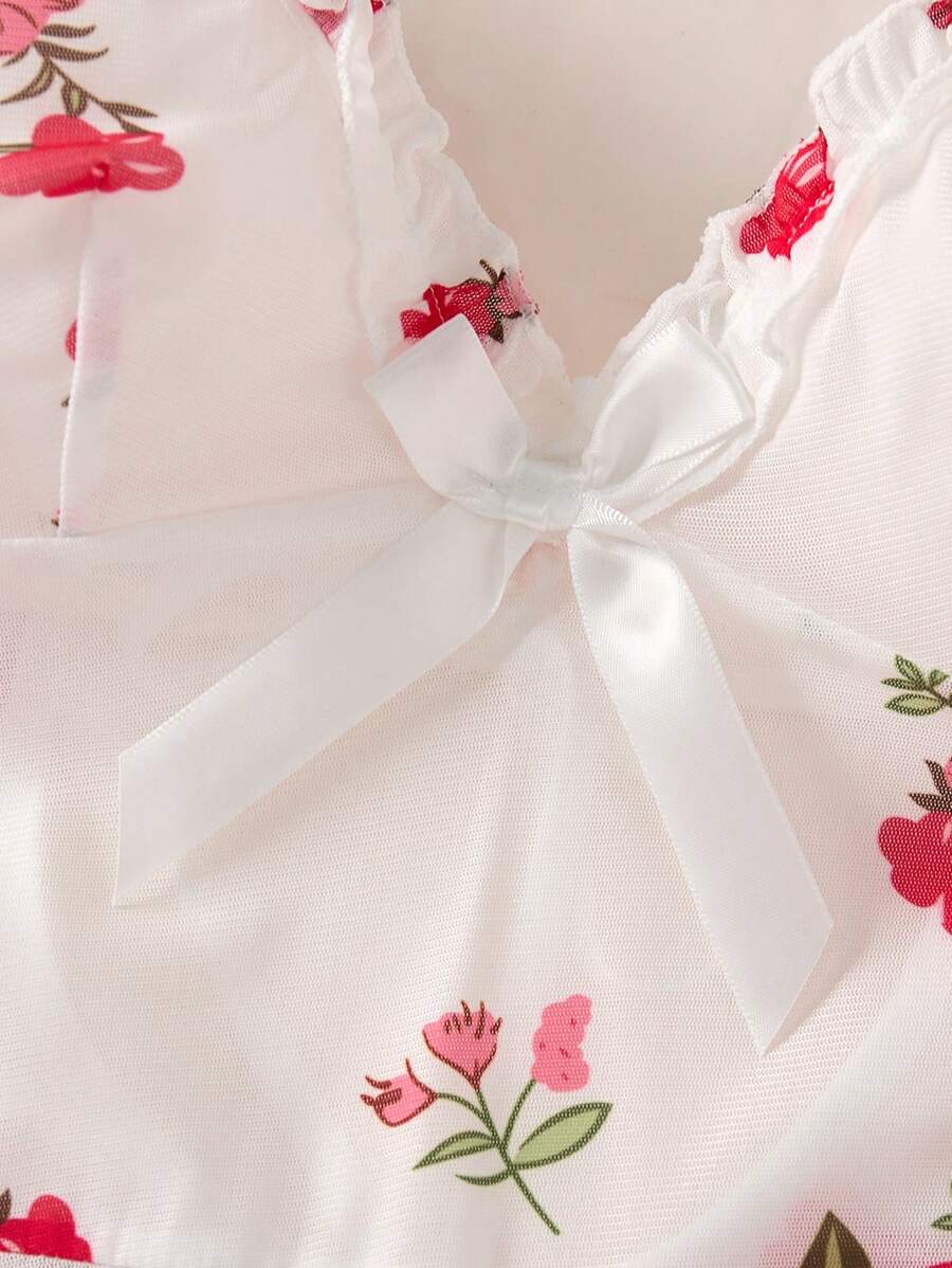 SHEIN طقم نوم 2 قطعة حريري بنقشة زهور وحاشية مطرزة وأشرطة