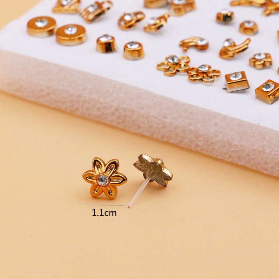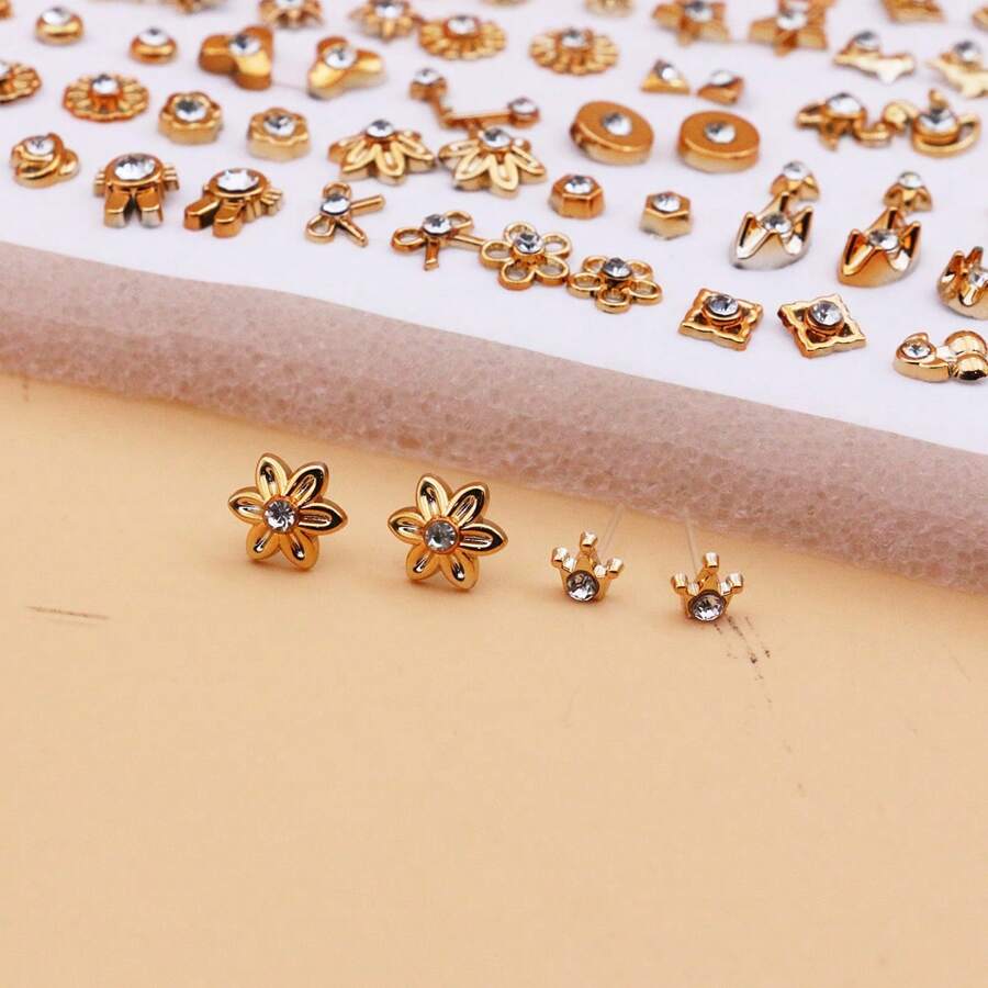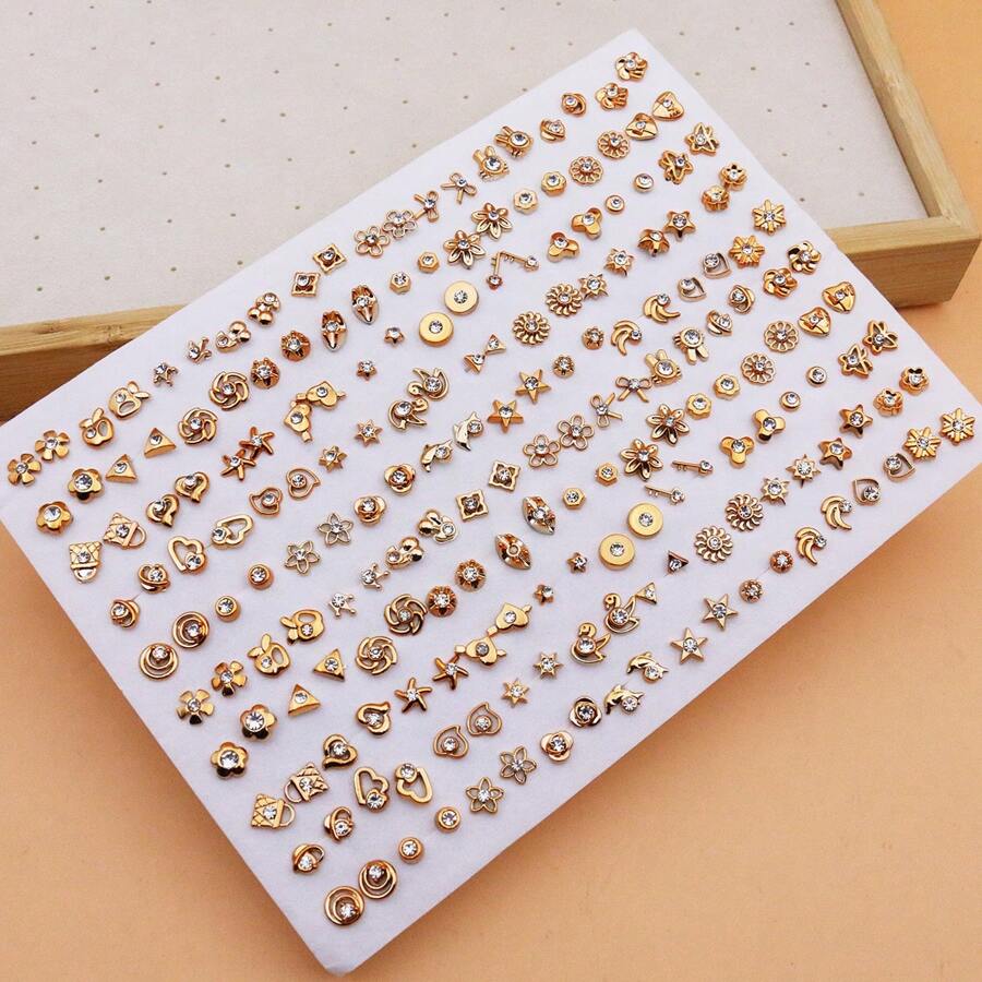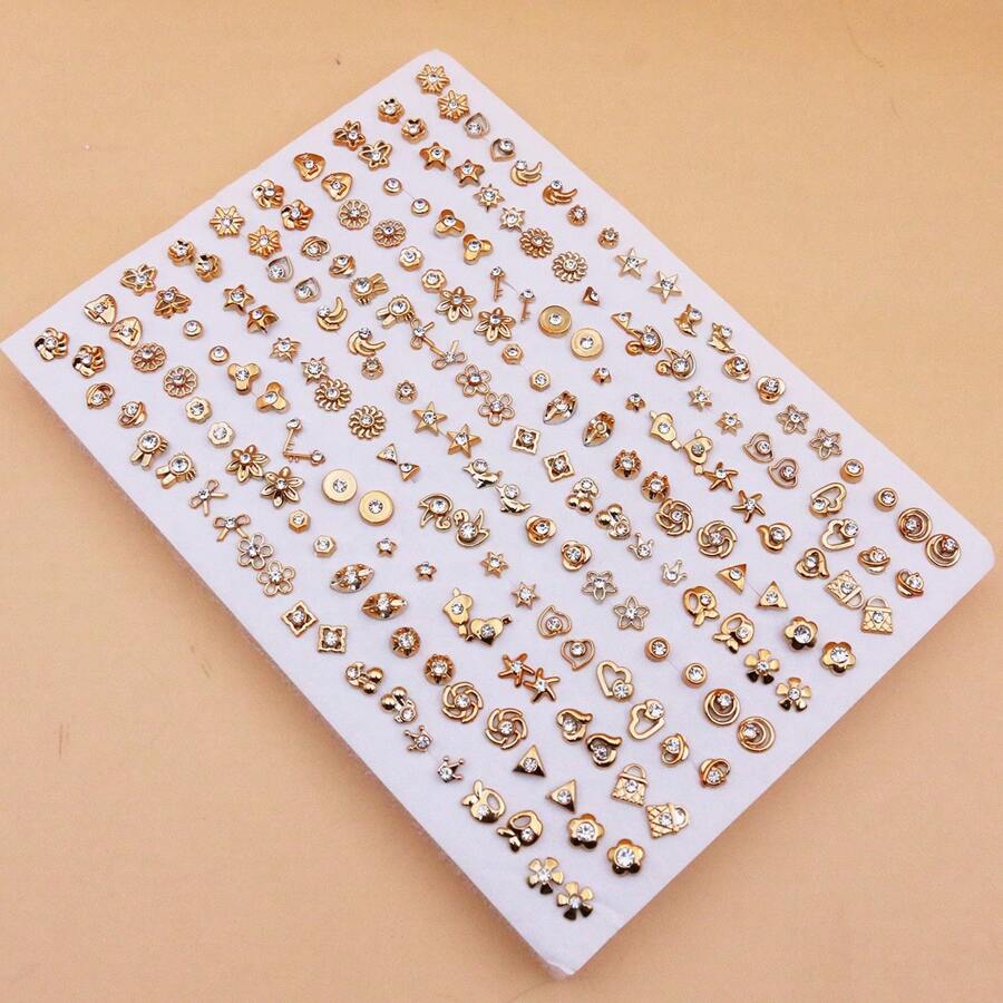 SHEIN طقم 100 زوج أقراط رينستون مطلية بالذهب بتصاميم بلاستيكية