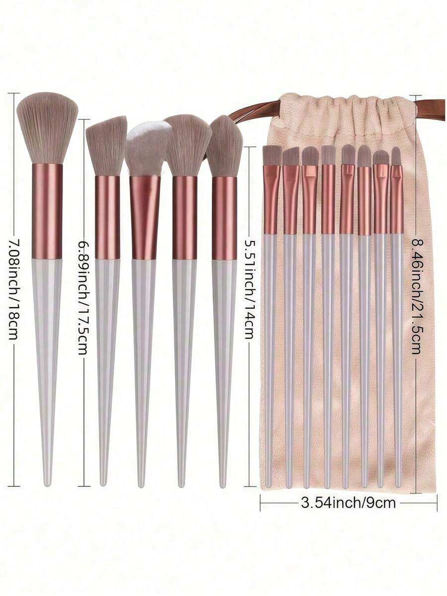 SHEIN طقم 13 فرشاة مكياج ناعمة مع حقيبة للاستخدام الاحترافي