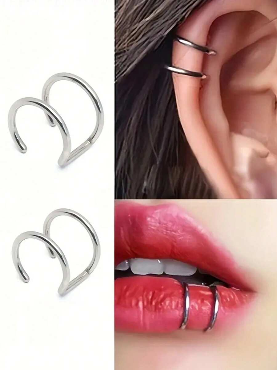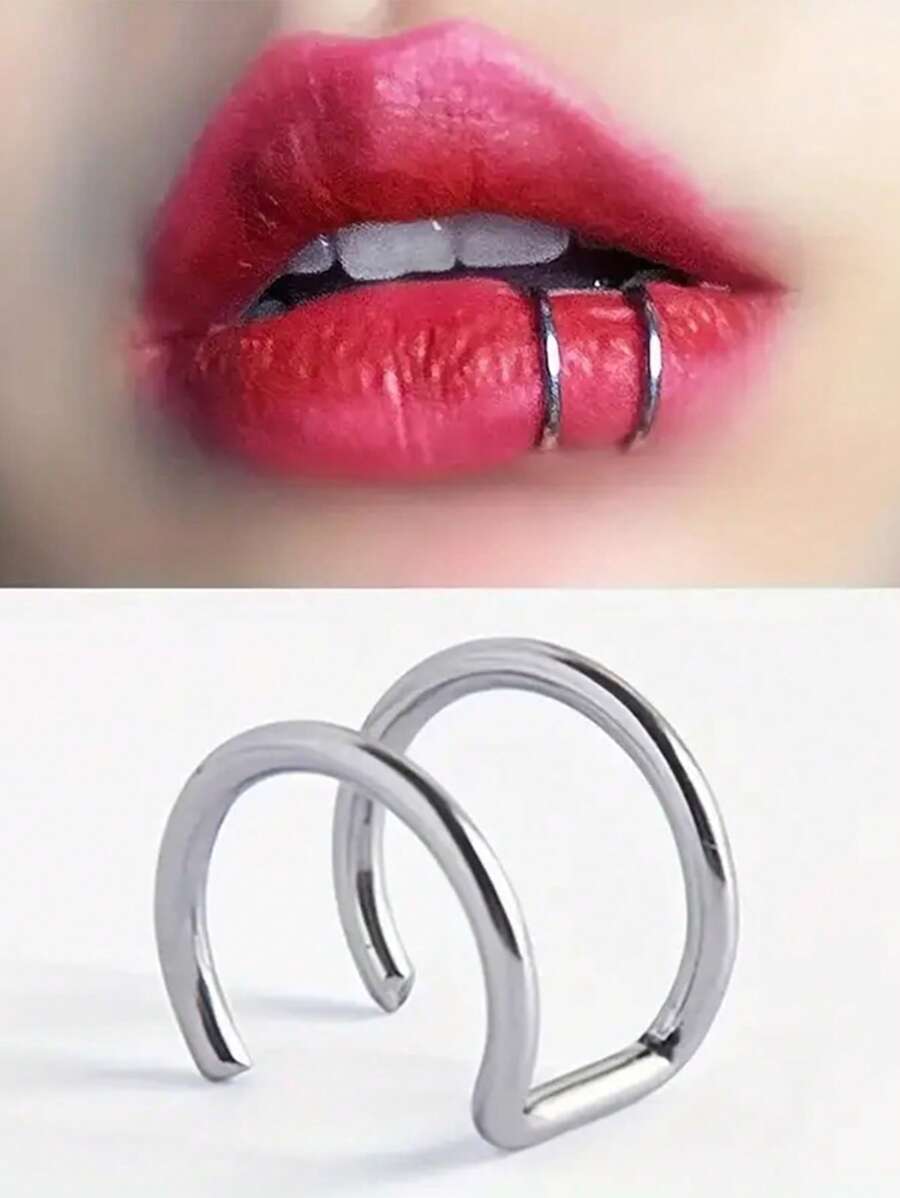 زوج من حلقات الشفاه الاصطناعية بتصميم عصري بطراز البانك وروك 🤘، مصنوعة من فولاذ مقاوم للصدأ عالي الجودة. مثالية كمجوهرات جسم تضيف لمسة جريئة وعصرية للنساء.