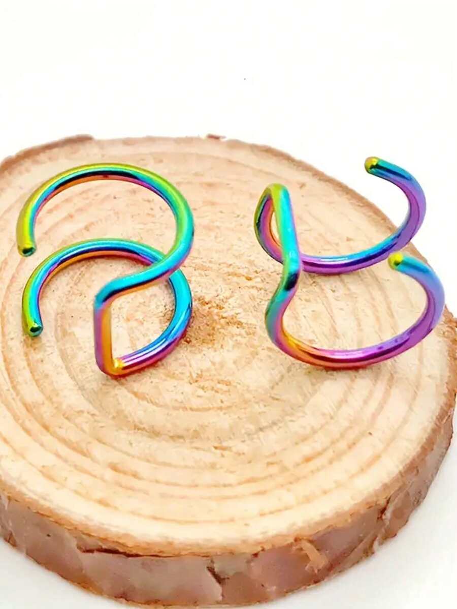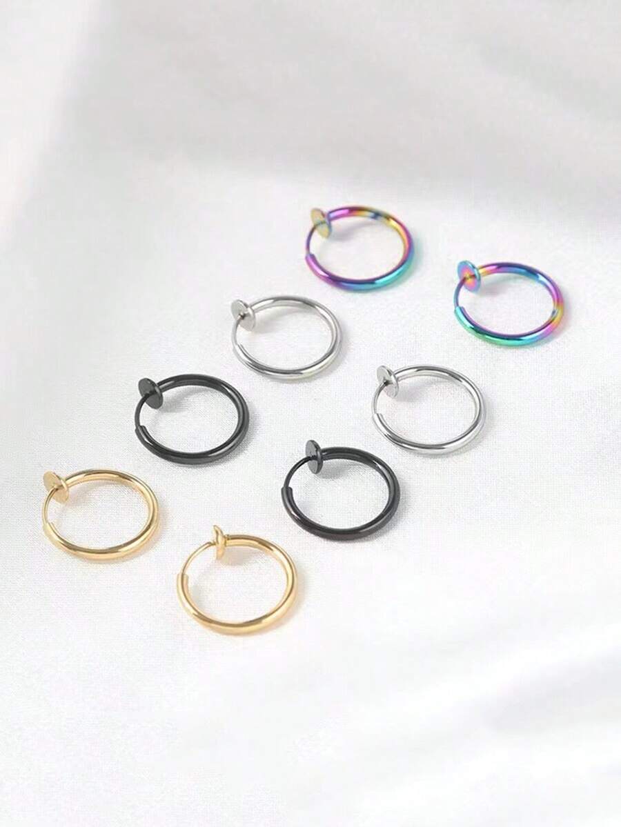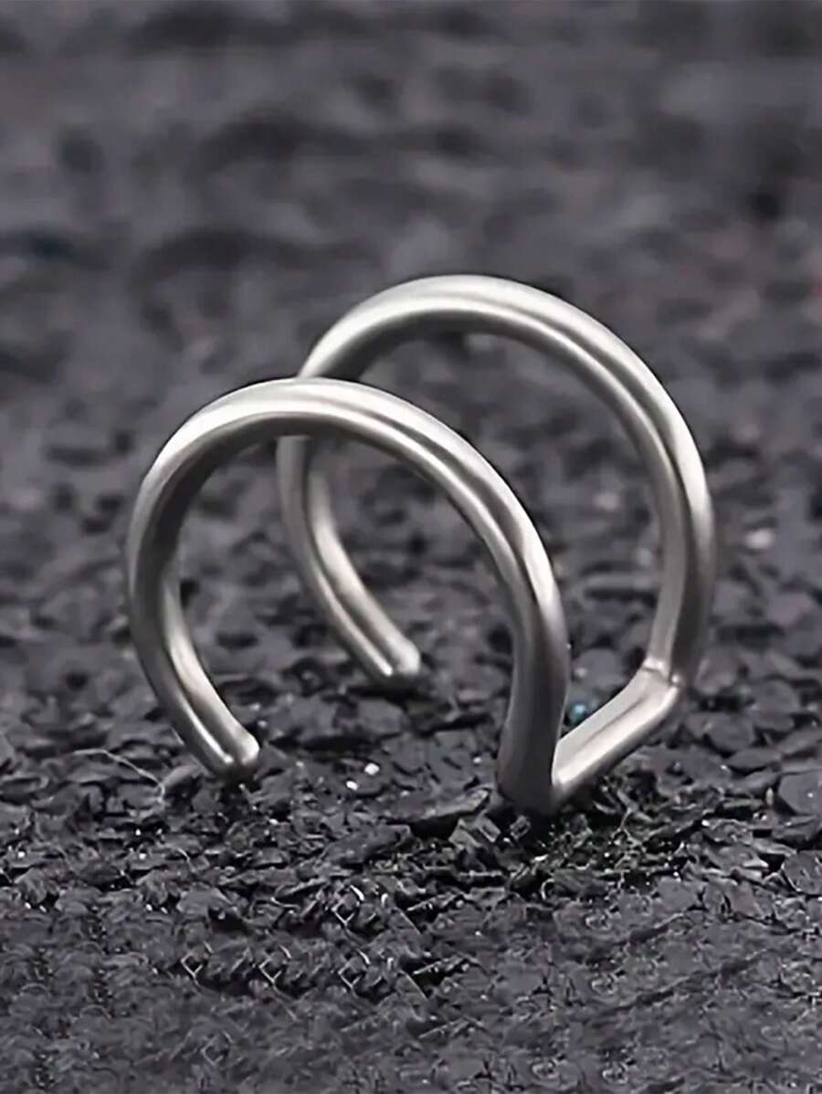 SHEIN طقم 2 حلقة شفة بدون ثقب من الصلب المقاوم للصدأ بطراز بانك