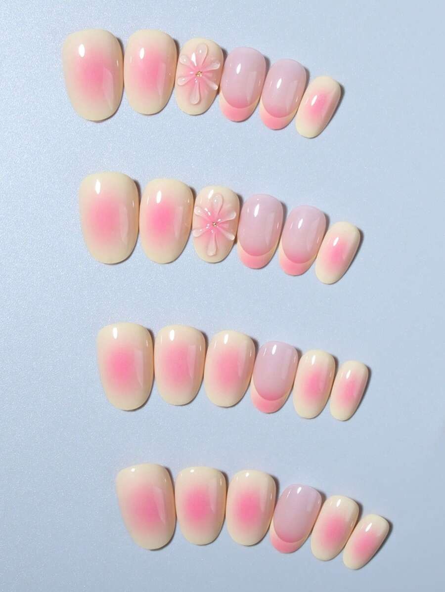 SHEIN طقم 24 قطعة أظافر قصيرة بيضاوية مزينة بزهور