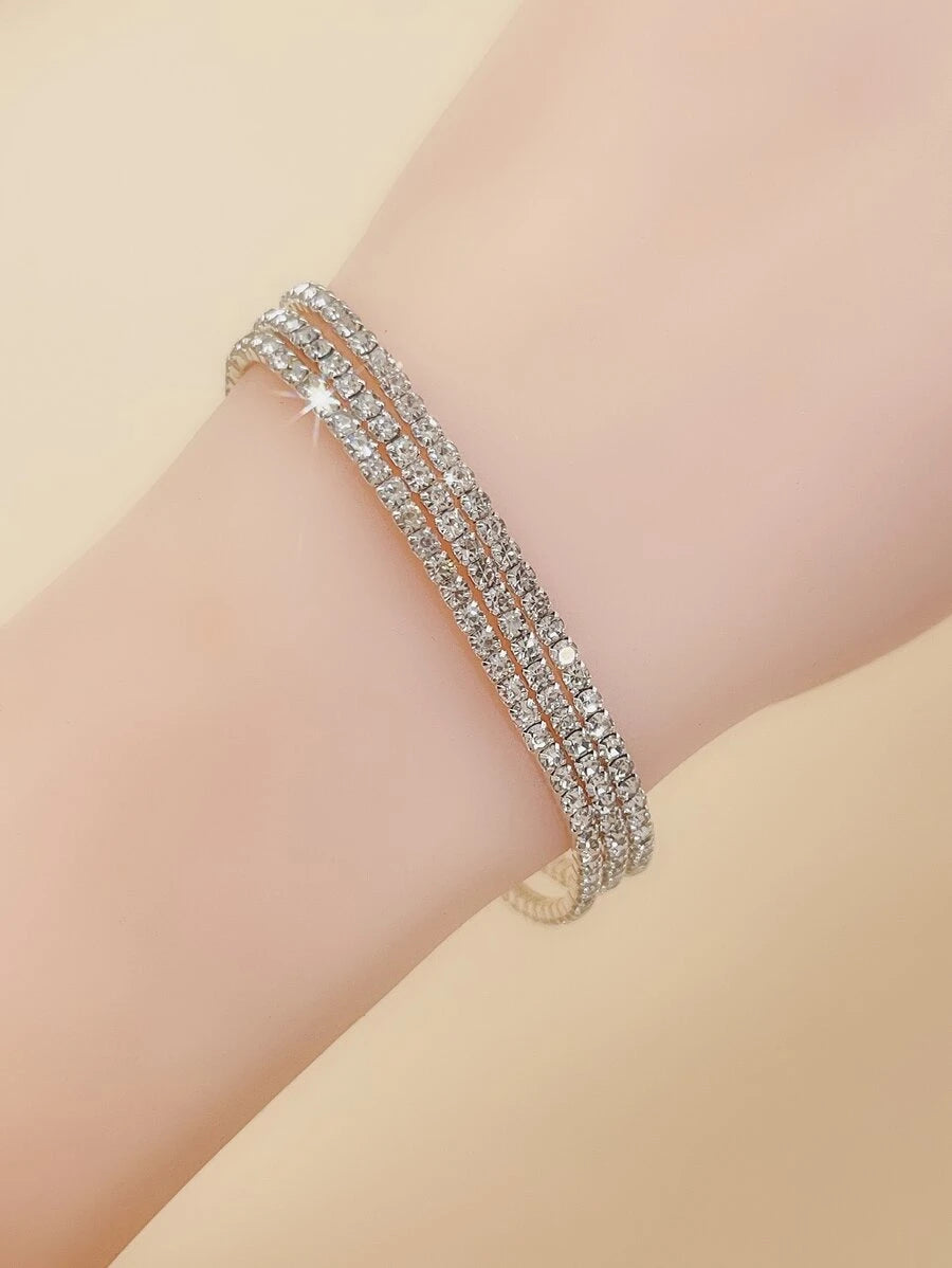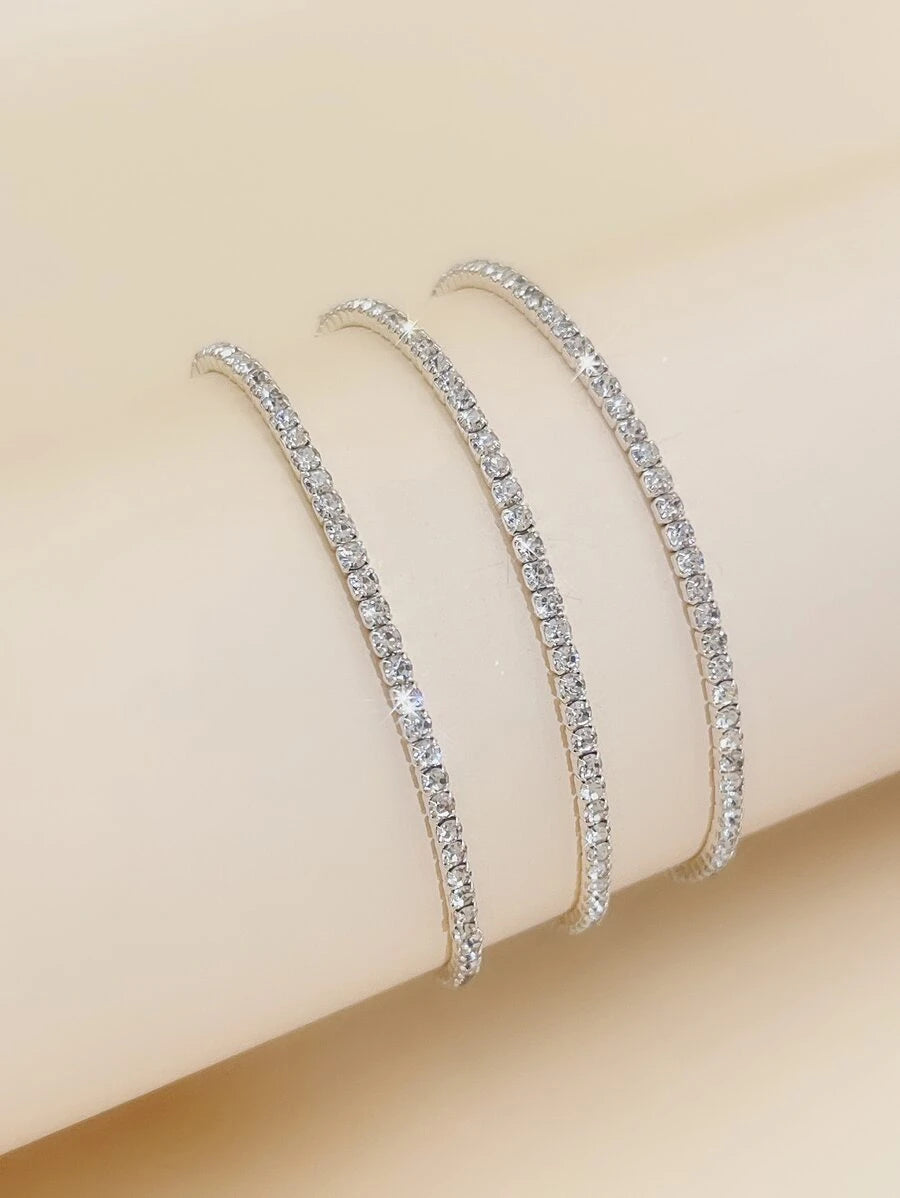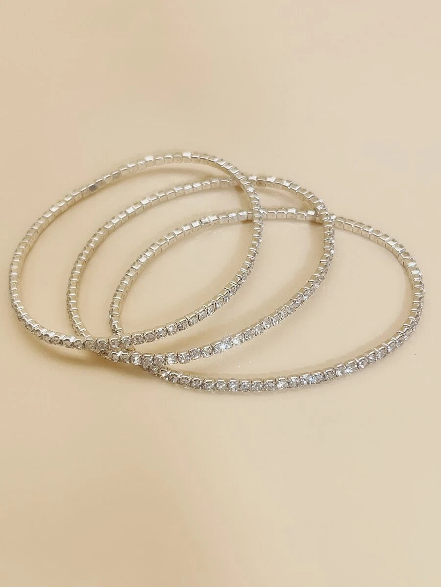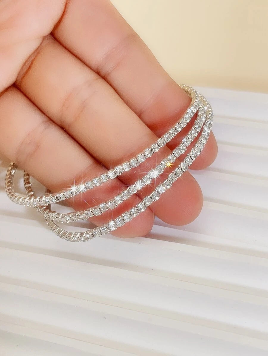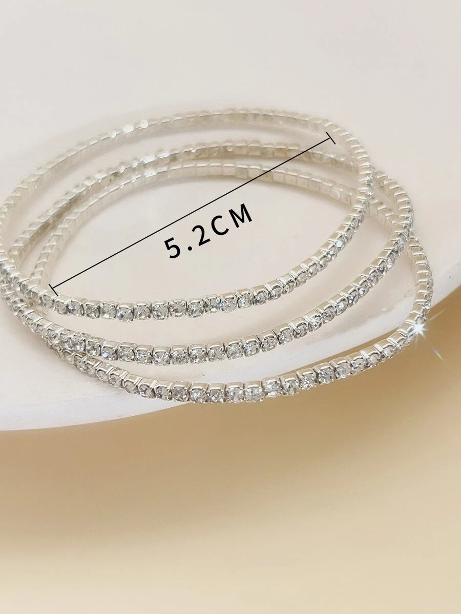 3 أساور مطاطية مرصعة بالألماس الأبيض اللامع، لمسة أنيقة تناسب الحفلات والمناسبات.