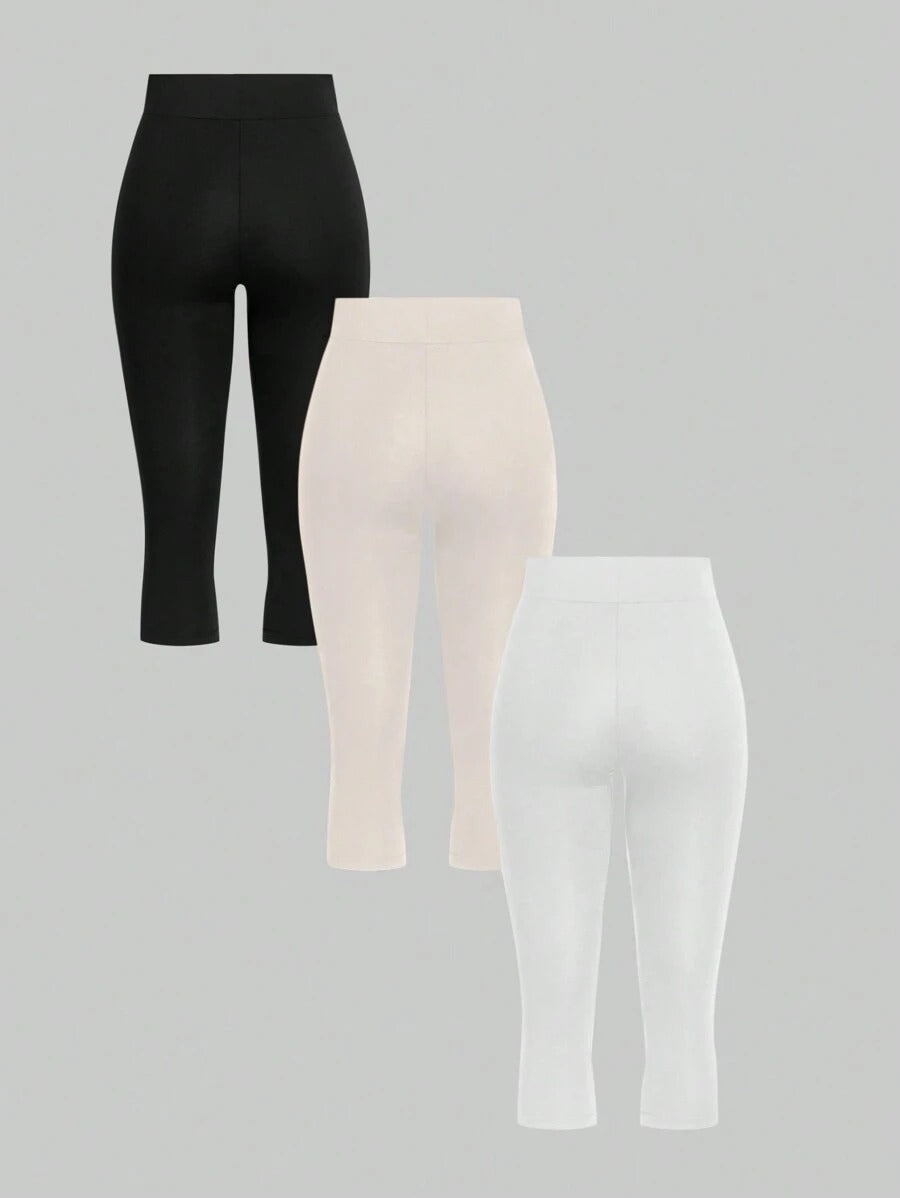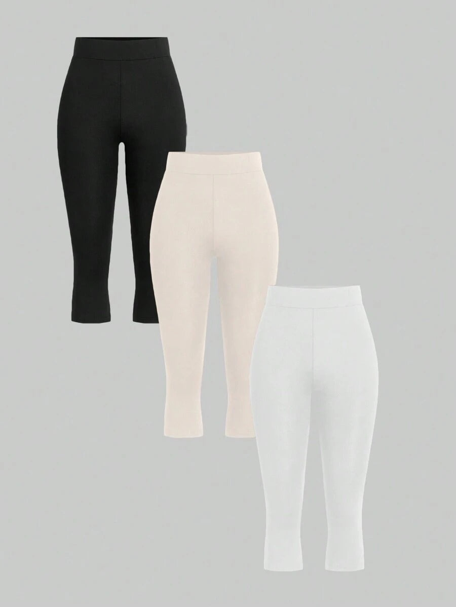 طقم 3 بنطلونات ضيقة SHEIN Essnce بخصر عالي 🎽