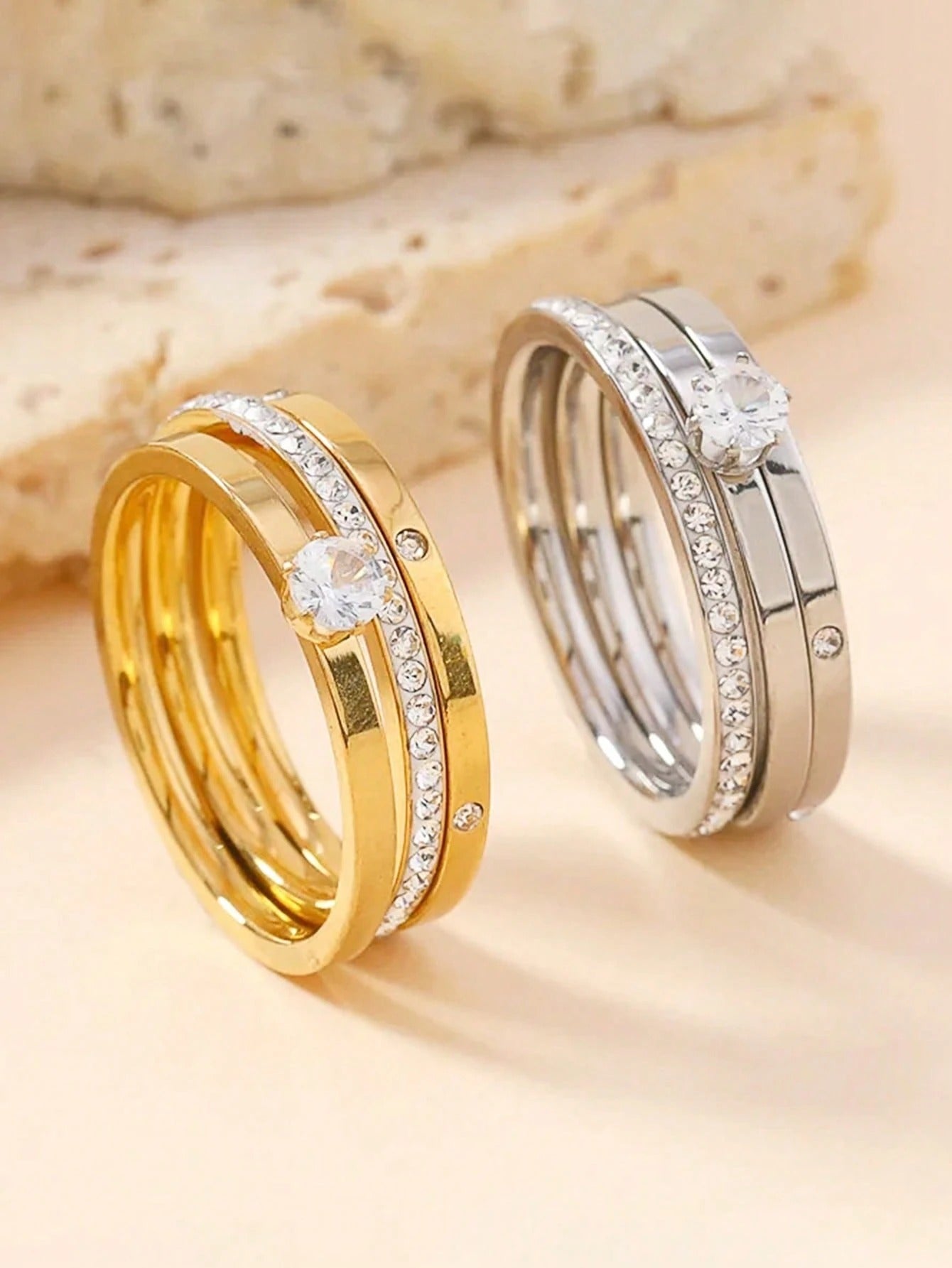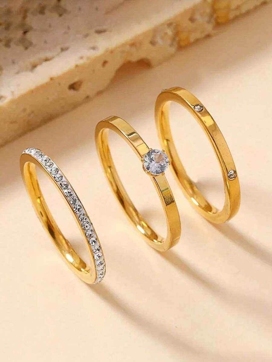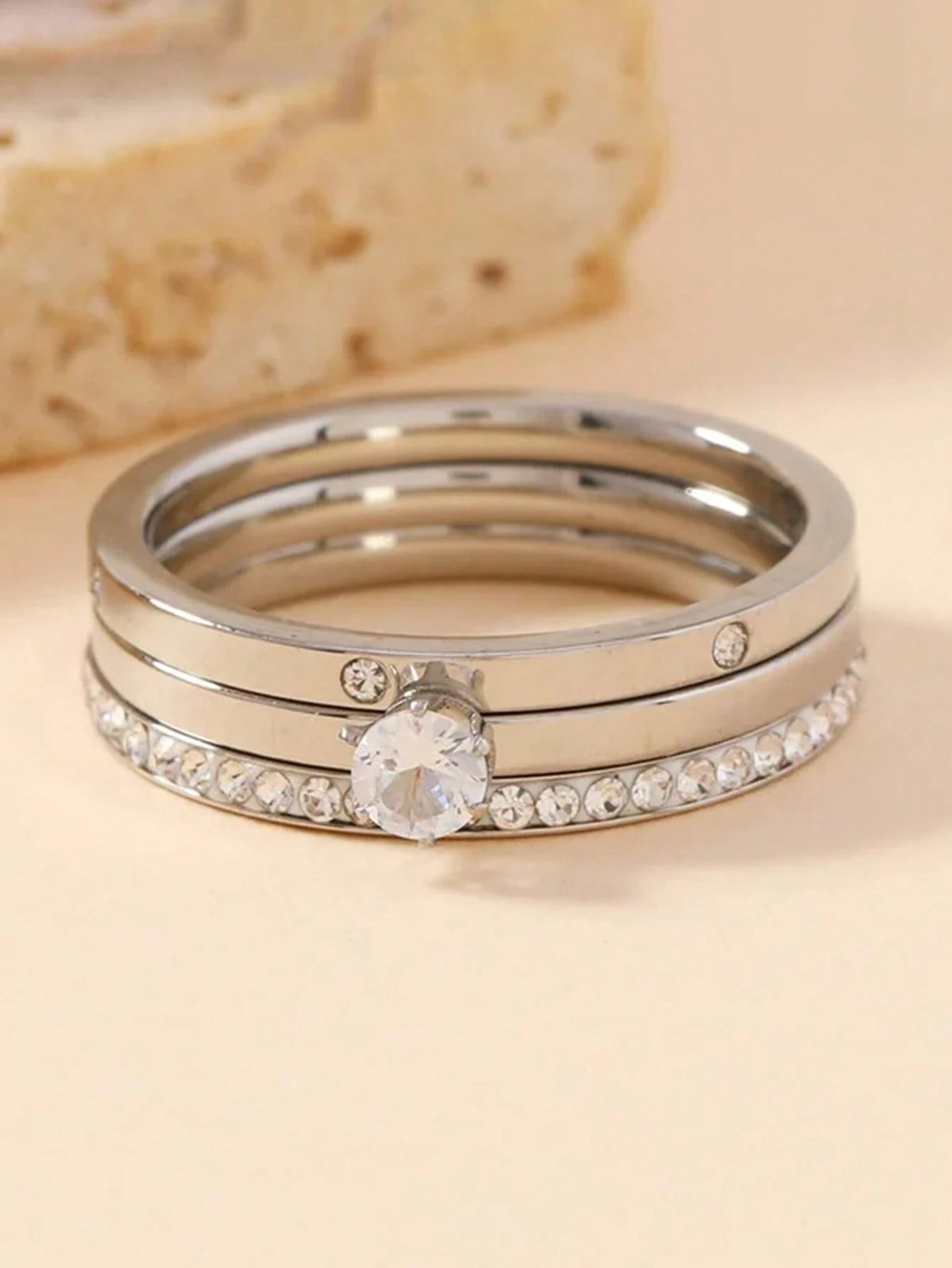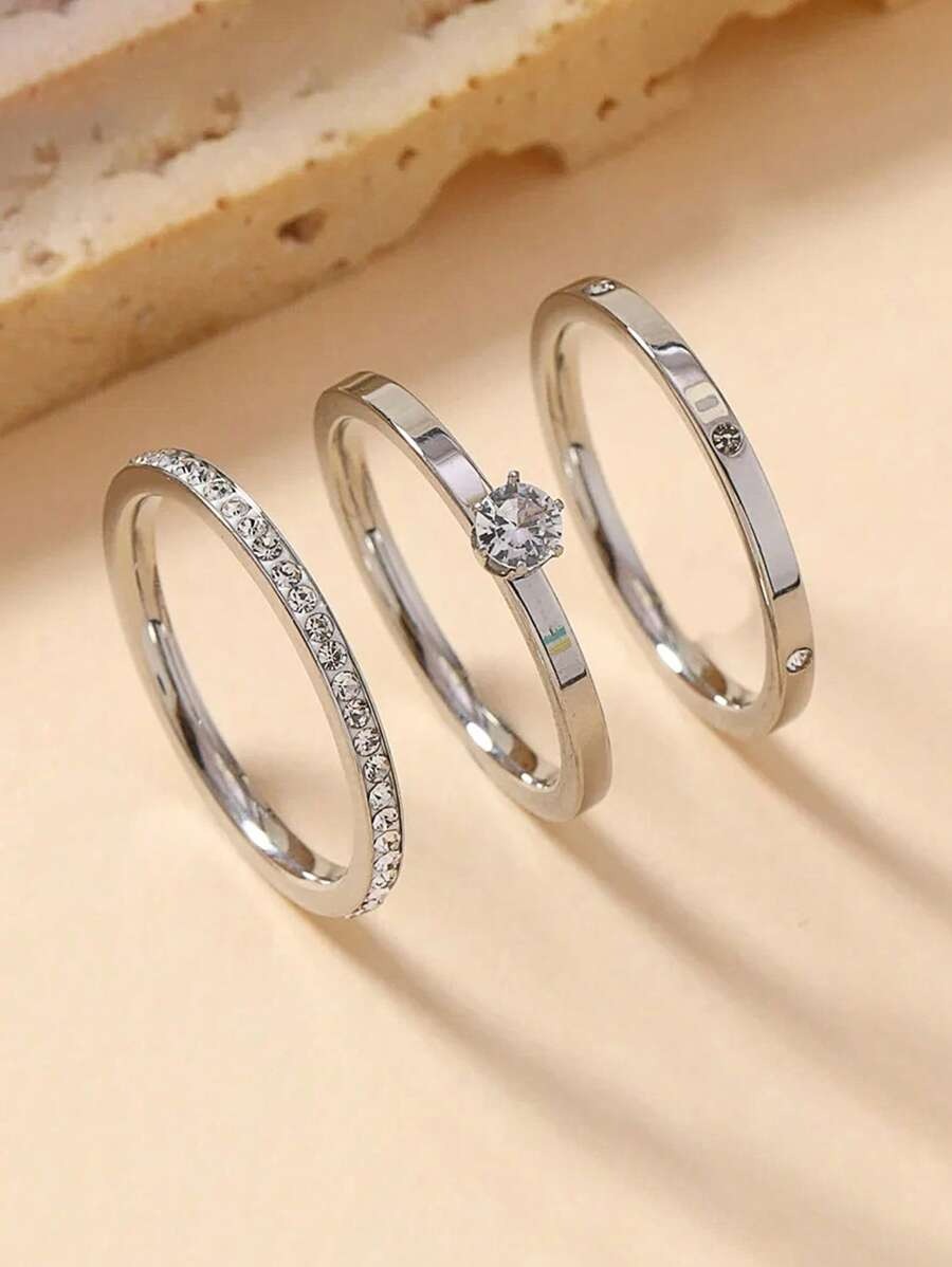 SHEIN طقم 3 خواتم ستانلس ستيل