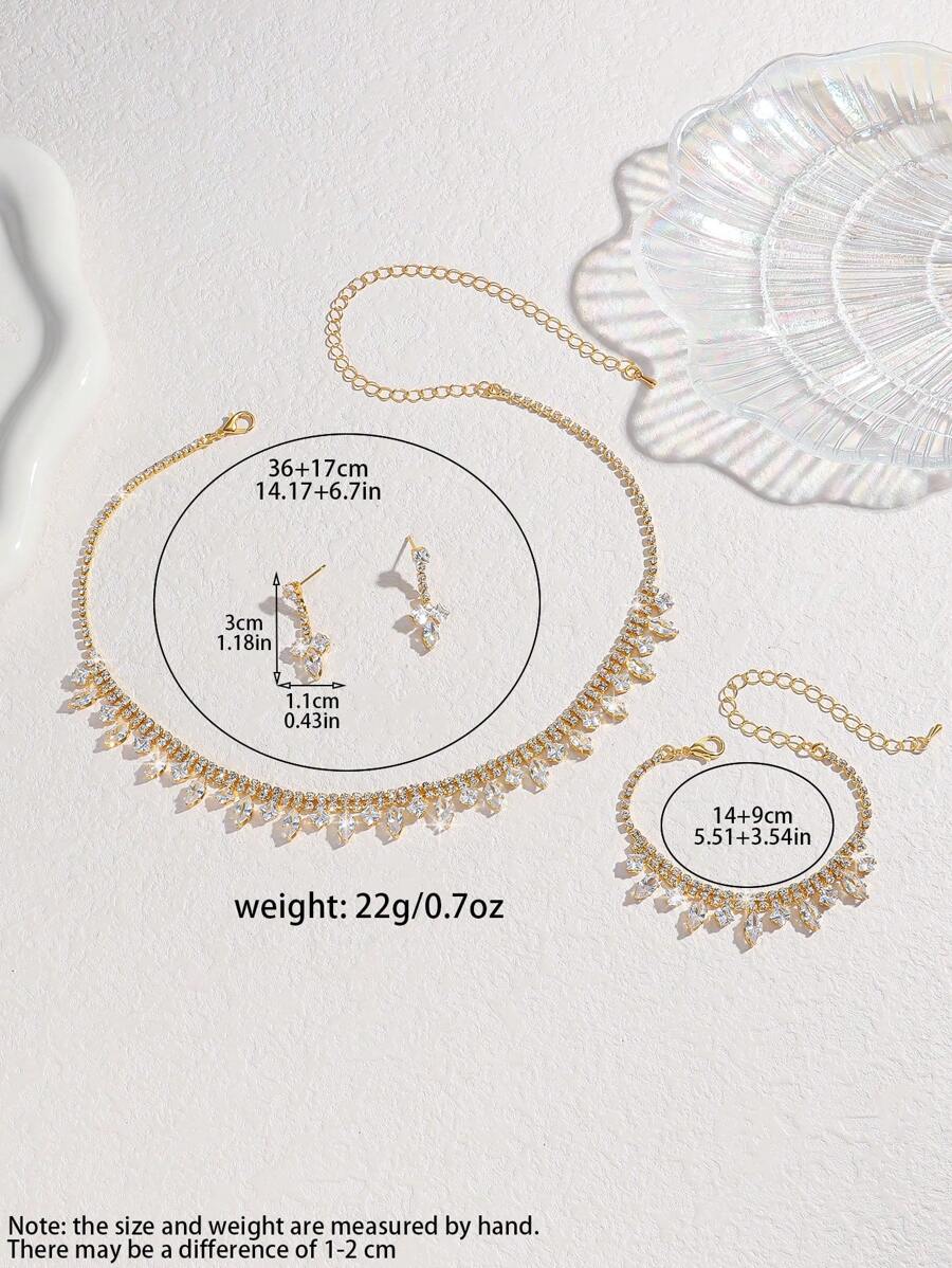SHEIN طقم 4 قطع مجوهرات بزركونيا تشمل قلادة وأقراط وسوار