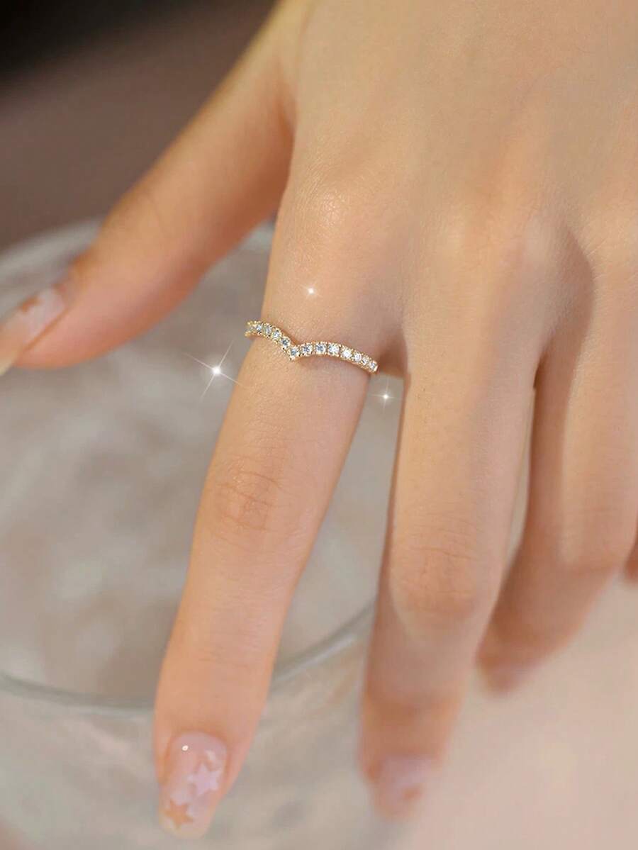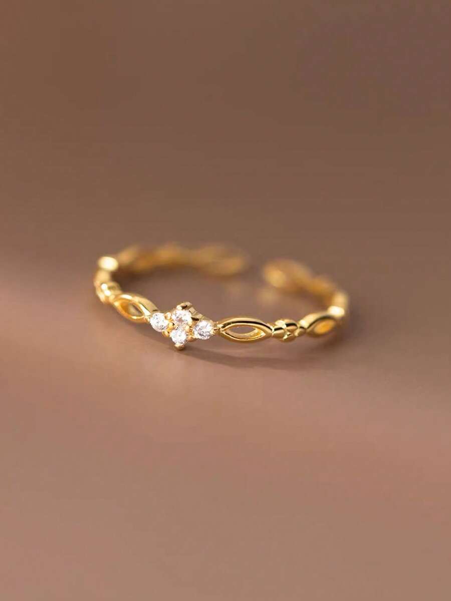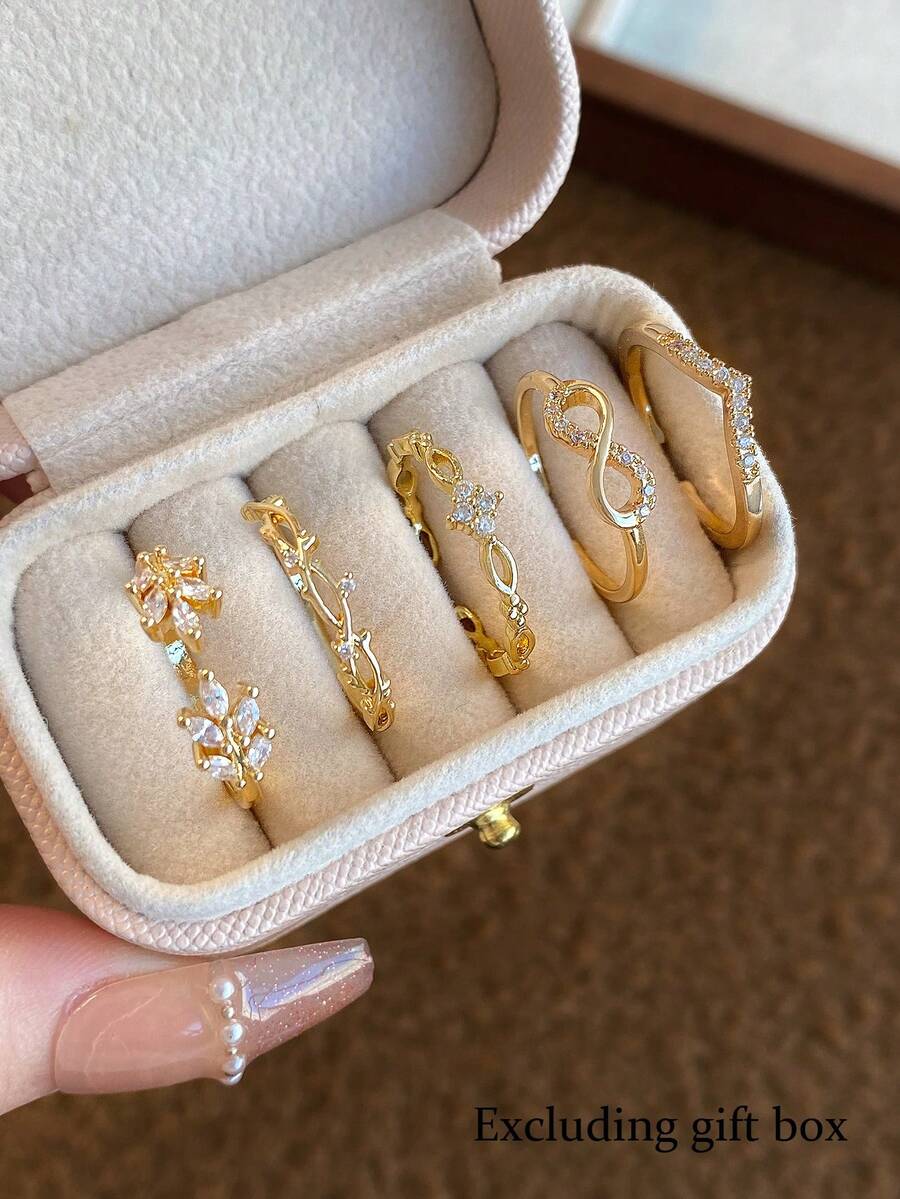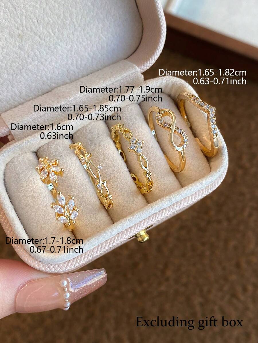 SHEIN طقم 5 خواتم نحاسية بتصميم ورقي رقيق مزينة زركونيا