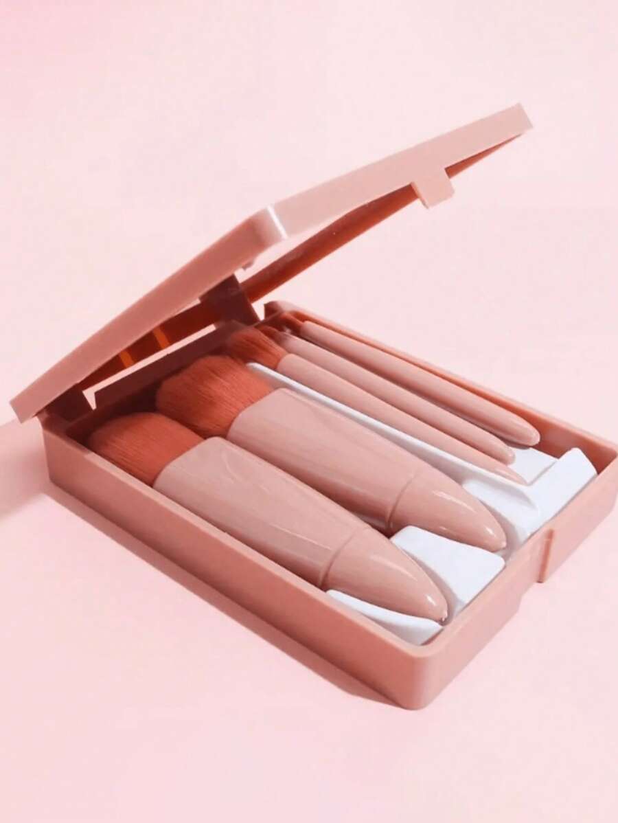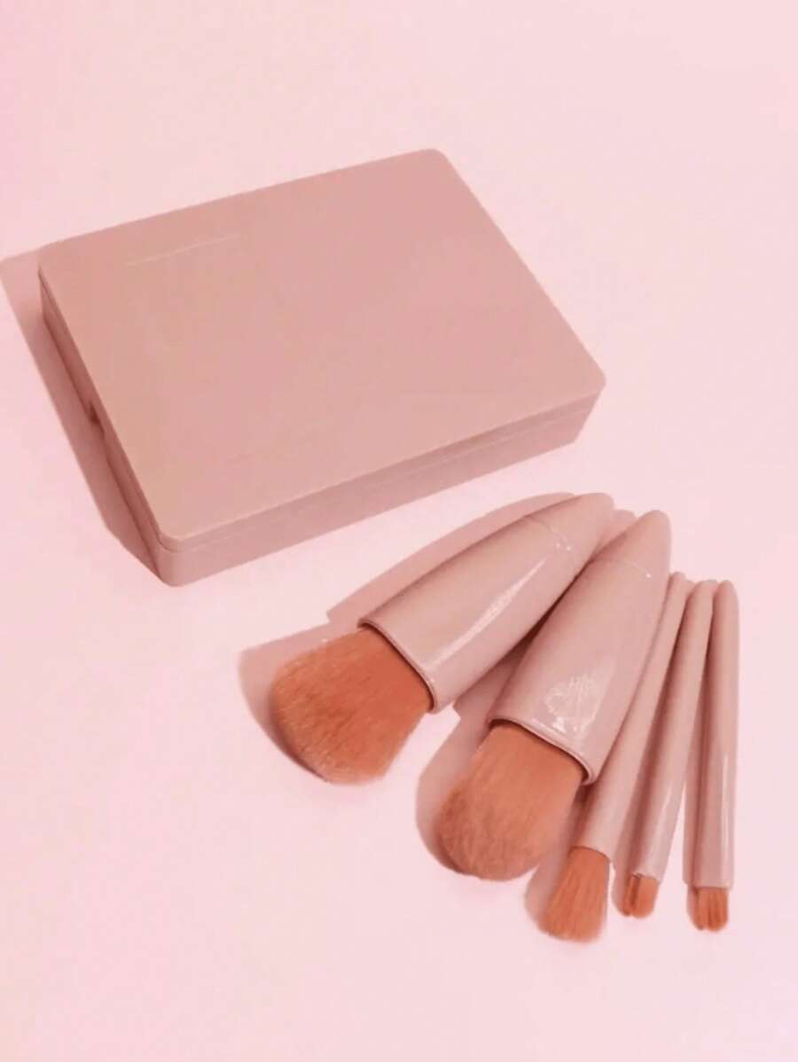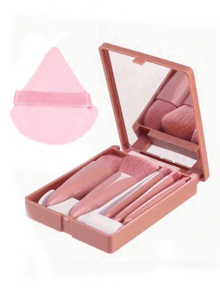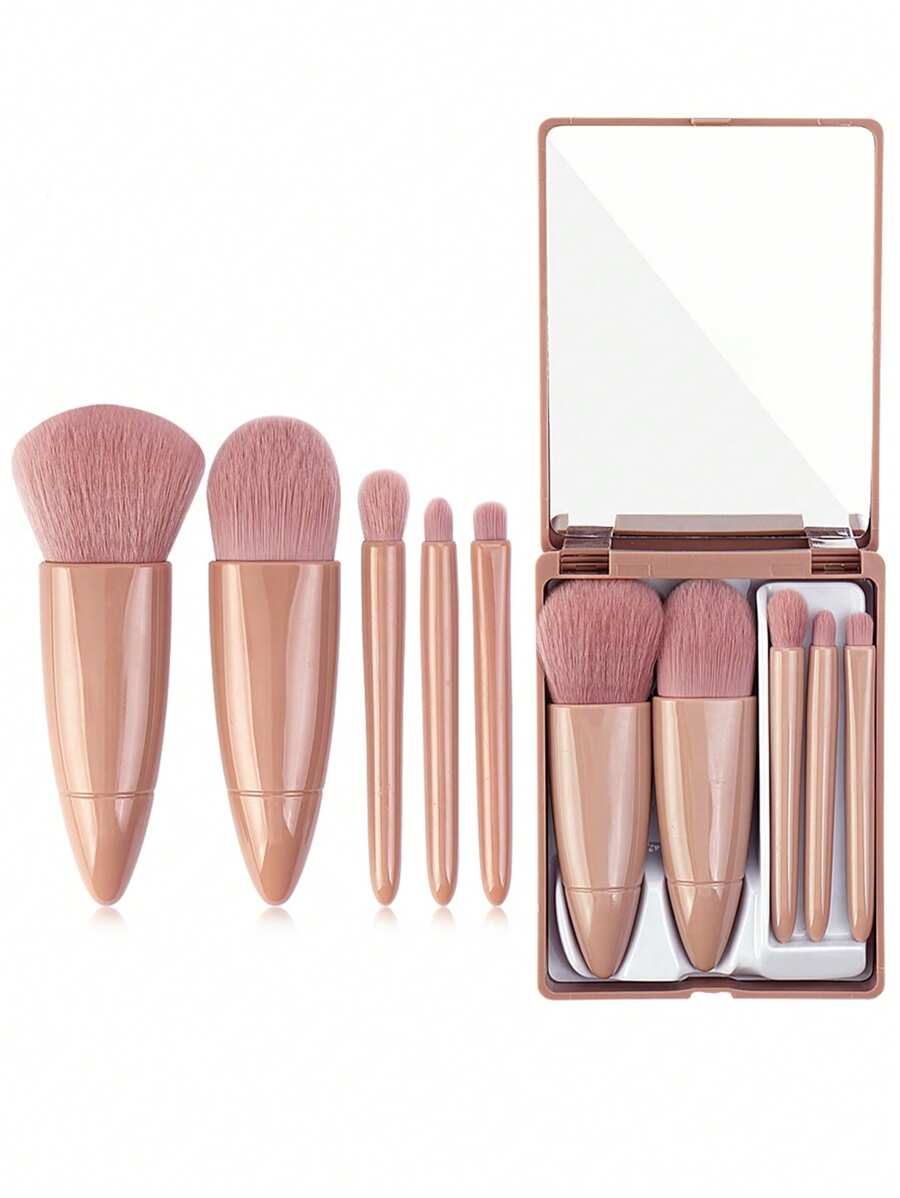 SHEIN طقم 5 فرش مكياج مع مرآة محمولة للسفر